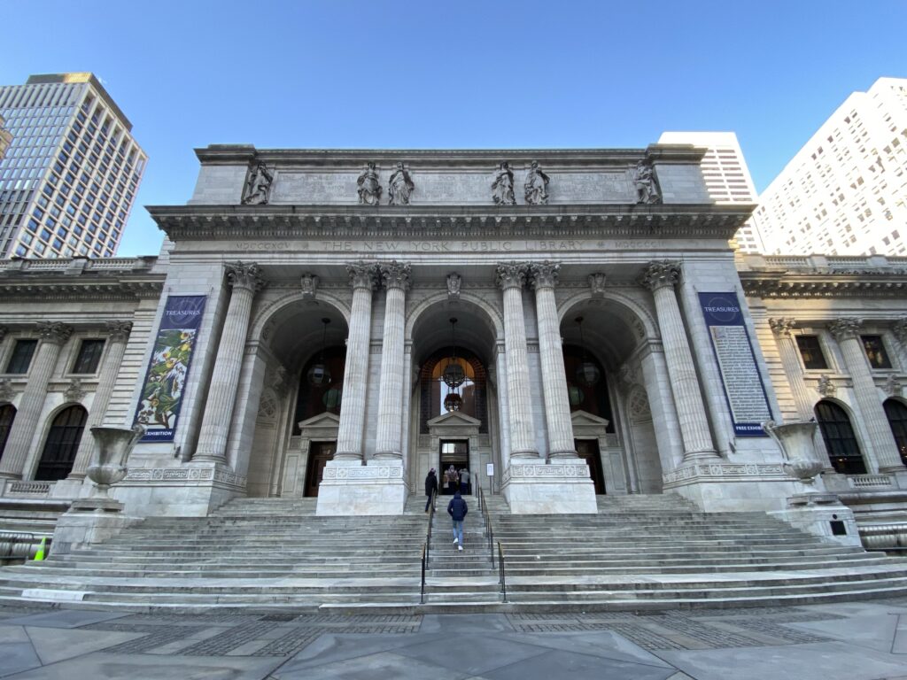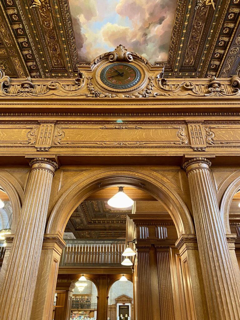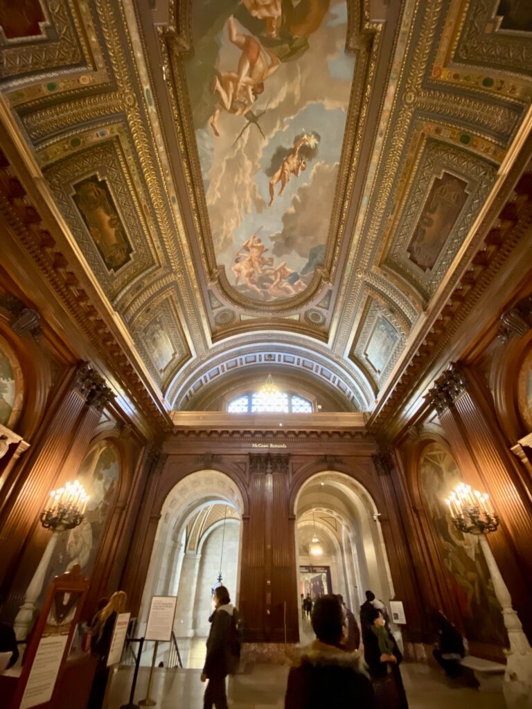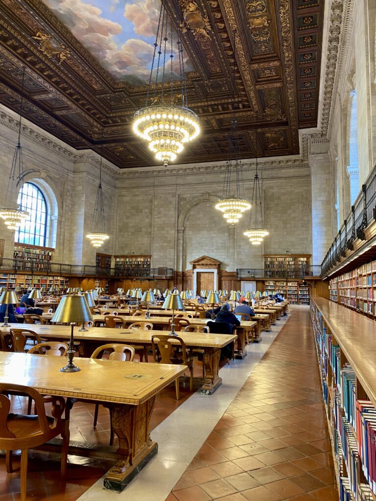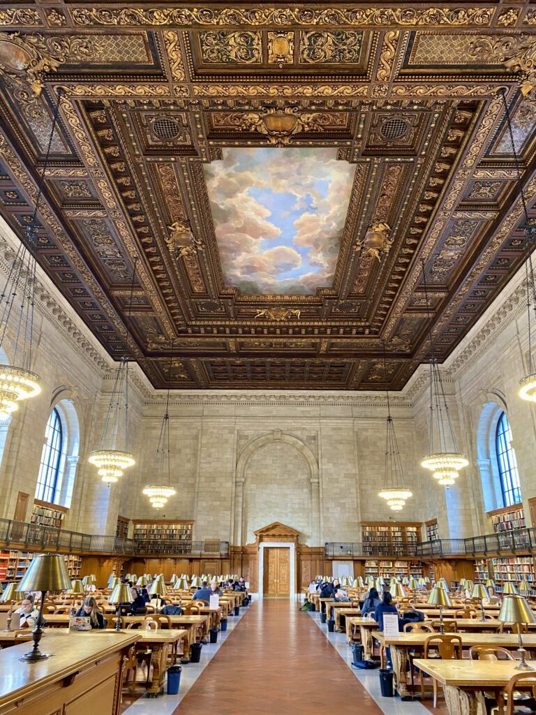 C’est bien beau de se lever tôt pour visiter un maximum dans la journée mais on n’en peux plus ! On prend notre temps ce matin et partons de l’hôtel vers 10h pour aller à la bibliothèque principale de New York, la NY public library. De 10h à 11h, on peut accéder librement à la salle de lecture Rose Main Reading Room sans visite guidée. On commence donc par là. Ca doit être inspirant de travailler dans un environnement comme celui-ci.