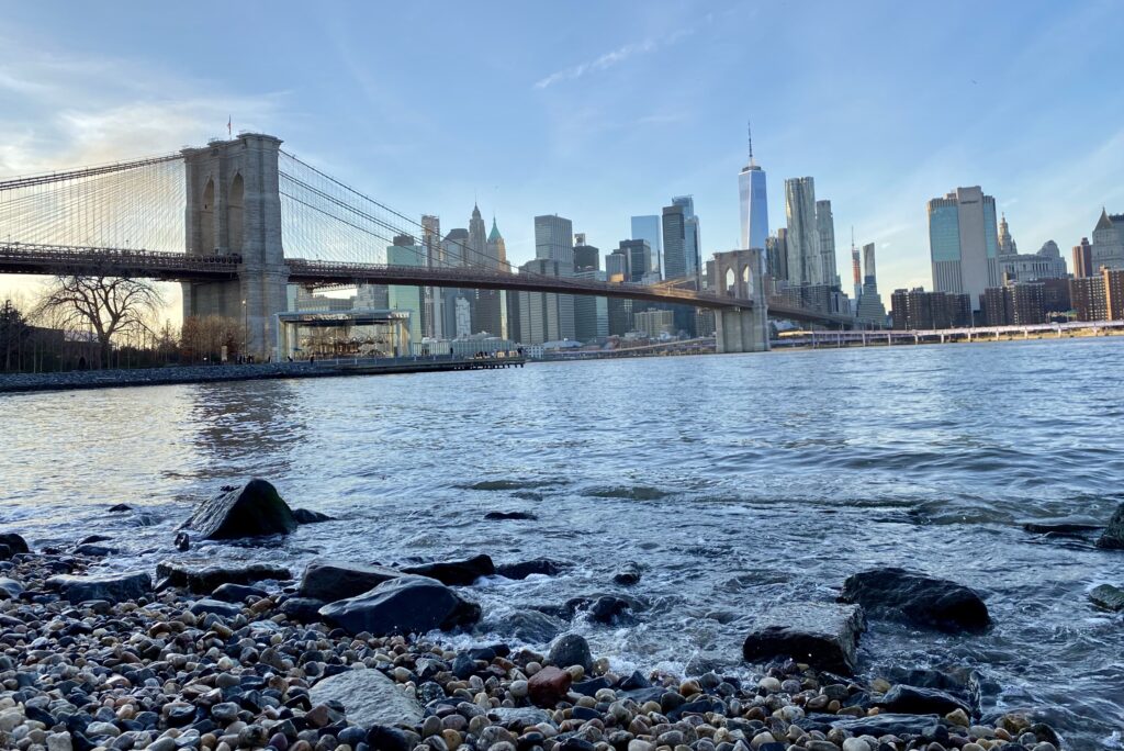 On traine un peu dans les boutiques vintage mais ils faudrait des heures pour fouiller parmi les milliers de vêtements. On reprend le métro pour un autre quartier de Brooklyn : DUMBO, acronyme de Down Under Manhattan Bridge Overpass. Nous y allons faire un tour à chaque fois que nous venons à New York car, il faut le dire, c’est d’ici qu’on a la plus belle vue sur les deux ponts (Manhattan et Brooklyn bridges), le sud de Manhattan et les buildings du Financial district.