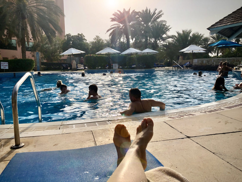 Comme il fait 26°, vers 16h on décide de rentrer pour profiter de la plage privée de l’hôtel et de la piscine. La mer est un peu fraîche mais la piscine est chaude alors c’est là, puis au bar de la plage et enfin au resto italien que nous terminons la journée.