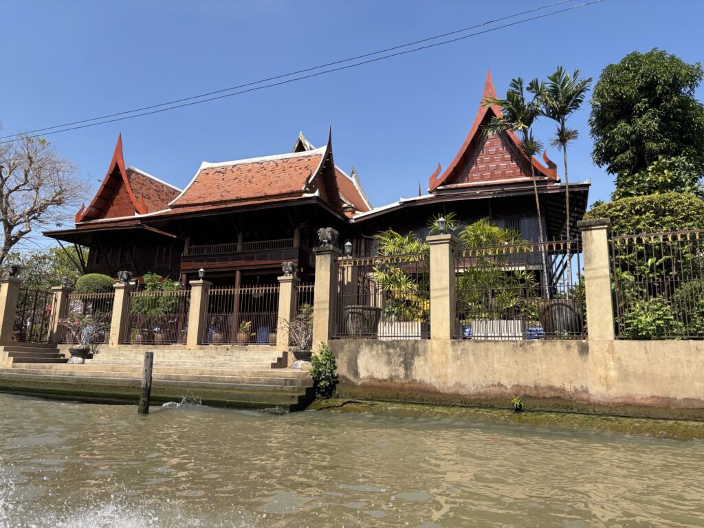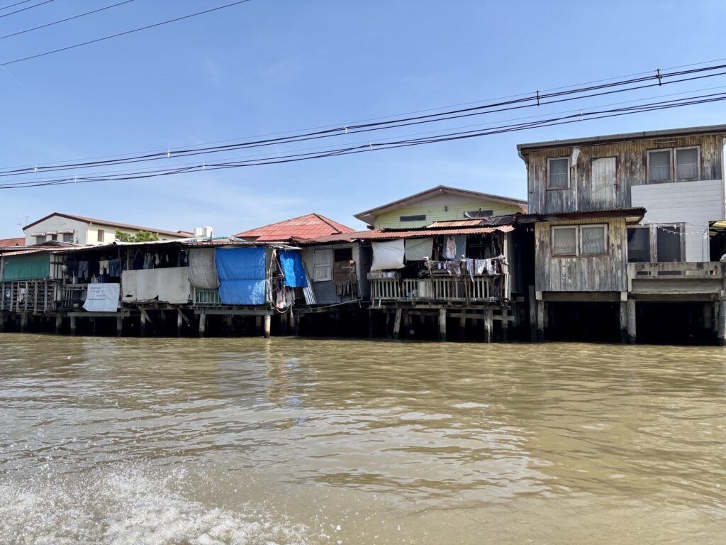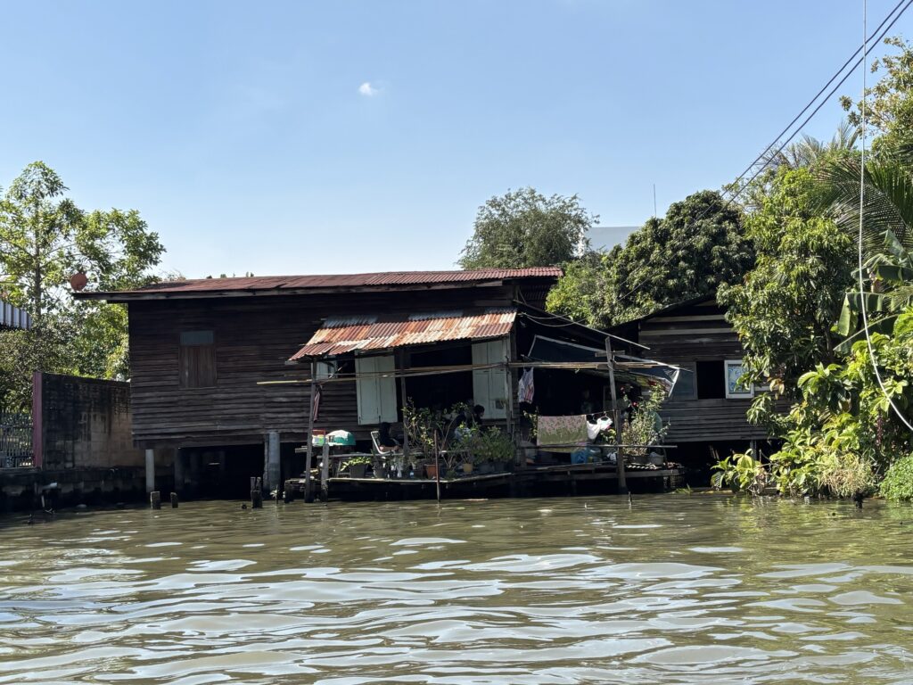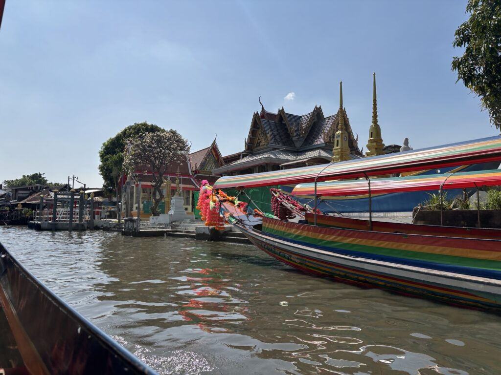 En sortant, un rabatteur nous propose une promenade en bateau dans les khlongs. Ça tombe bien, c’est ce que j’avais prévu de faire ! Il nous emmène au quai et nous partons pour 1h30 sur les canaux de Bangkok. Je m’attendais à autre chose, à des canaux plus étroits, à davantage de vie sur et au bord de l’eau. C’est agréable mais on s’ennuie un peu.