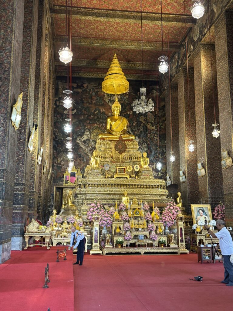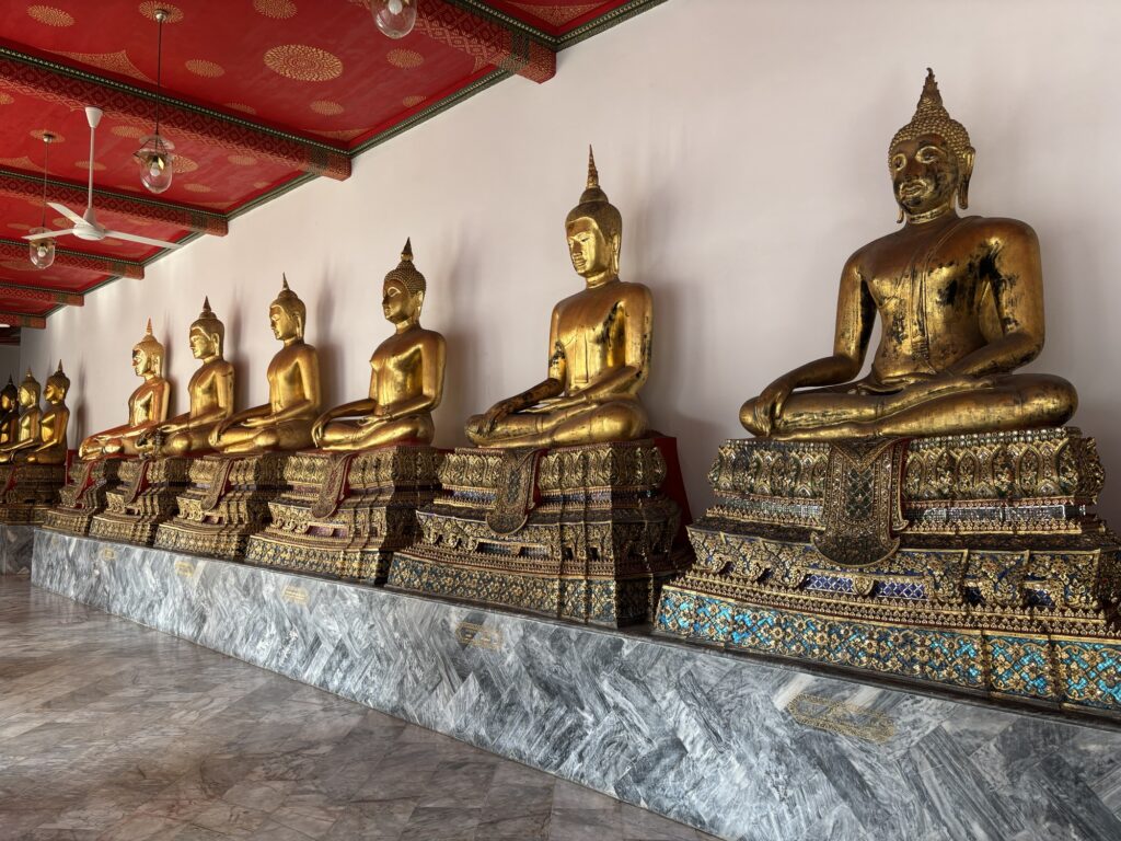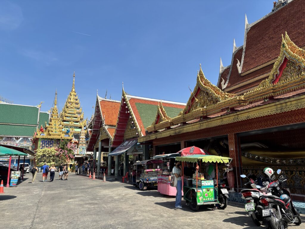 Le bateau nous ramène sur les quais du Chao Phraya. Comme il est encore tôt, nous enchaînons avec la visite du Wat Pho, aussi appelé temple du Bouddha couché.