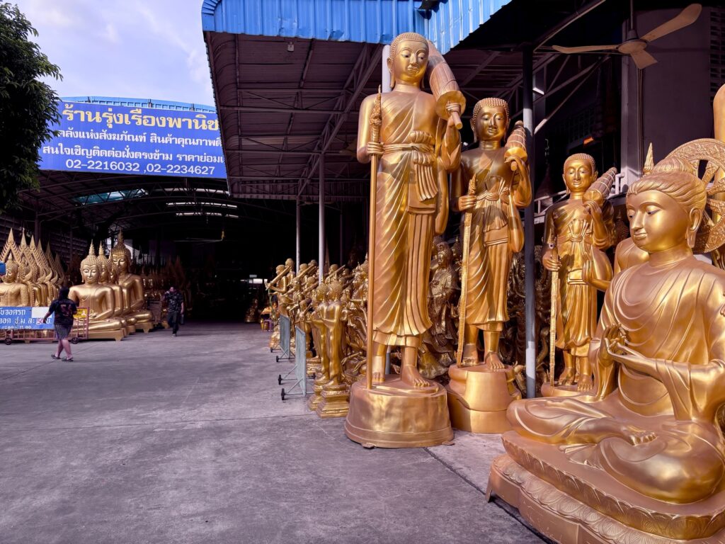 Pour terminer, nous nous dirigeons vers le Wat Saket en traversant le quartier des grossistes en Bouddhas.
