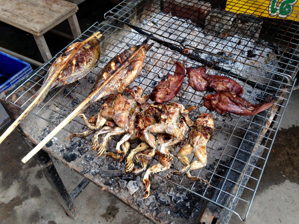 On trouve de tout ici, de la couenne de porc séchée (avec les poils !!! Beurk), du crapaud grillé et même de la Vache qui rit conservée sur une étagère (pourquoi s’embêter à la mettre au frigo !)