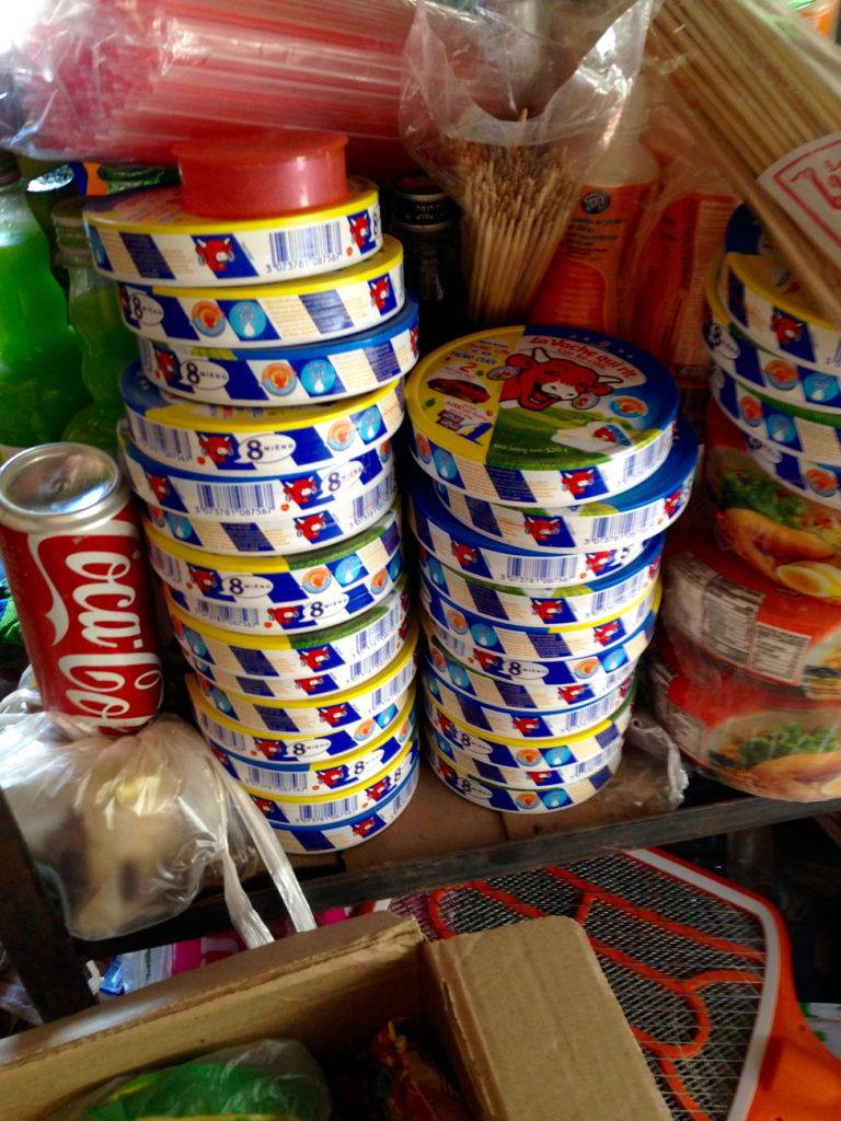 On trouve de tout ici, de la couenne de porc séchée (avec les poils !!! Beurk), du crapaud grillé et même de la Vache qui rit conservée sur une étagère (pourquoi s’embêter à la mettre au frigo !)