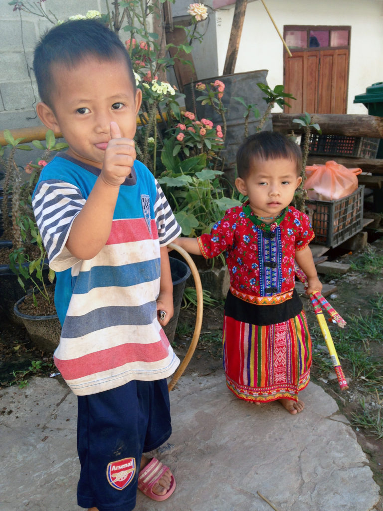 Au bout du sentier, nous arrivons au village. S’en suit une nouvelle séance de frisbee avec les enfants qui sont très réceptifs. J’ai vraiment eu une bonne idée en emmenant ces trucs ; ça ne prend pas beaucoup de place dans les valises, ça permet de créer un échange sympa et de faire plaisir aux petits en leur offrant autre chose que des stylos.