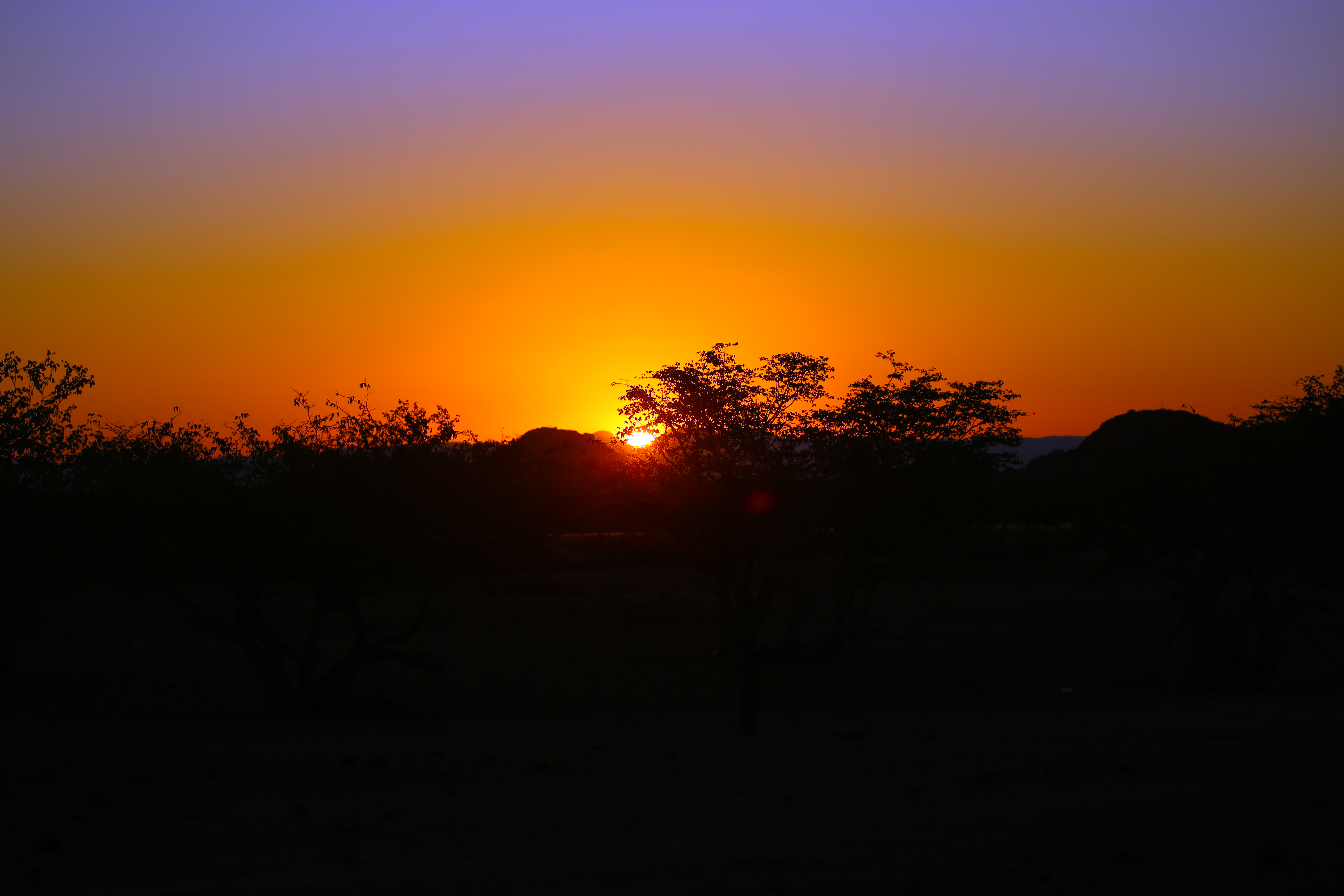 L’excursion comprend un sundowner, un apéro au soleil couchant. Il nous faut donc quitter les éléphants. Les voitures filent à toute vitesse car la quête des pachydermes a pris du temps et le soleil décline rapidement. C’est l’un des plus beaux couchers de soleil que nous ayons vu. Les couleurs sont flamboyantes, allant du orange au violet.