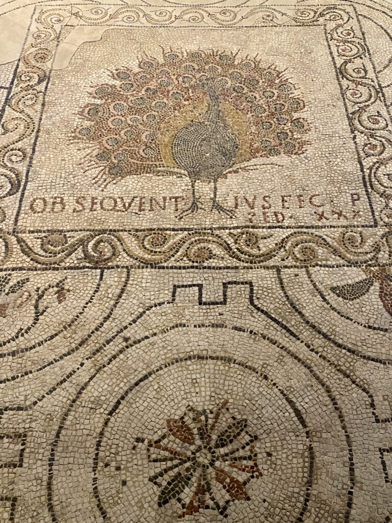 Nous pénétrons ensuite dans la crypte, par un escalier dont l’entrée se trouve dans la cathédrale. Tout un parcours est aménagé pour sillonner entre les vestiges de l’ancienne basilique de Santa Reparata. Une longue campagne de fouilles, dans les années 60/70, a permis de mettre au jour des sols en mosaïques, des tombeaux, des murs peints…