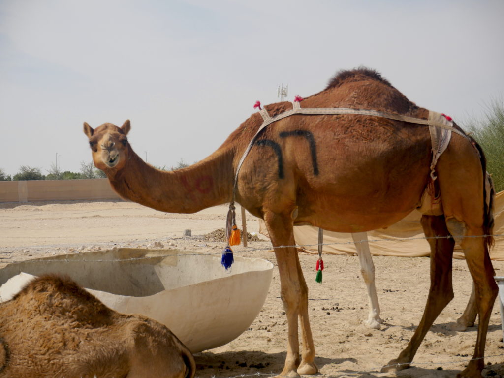Sauf qu’on n’a jamais trouvé ! Le gps donnait des indications approximatives qui nous envoyaient en dehors de la route mais il n’y avait pas de piste non plus. En cherchant, nous sommes tombés sur un camp d’entrainement de dromadaires de course.
