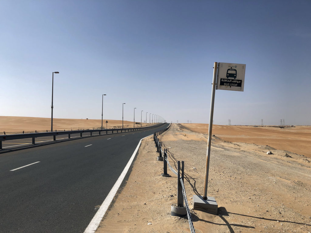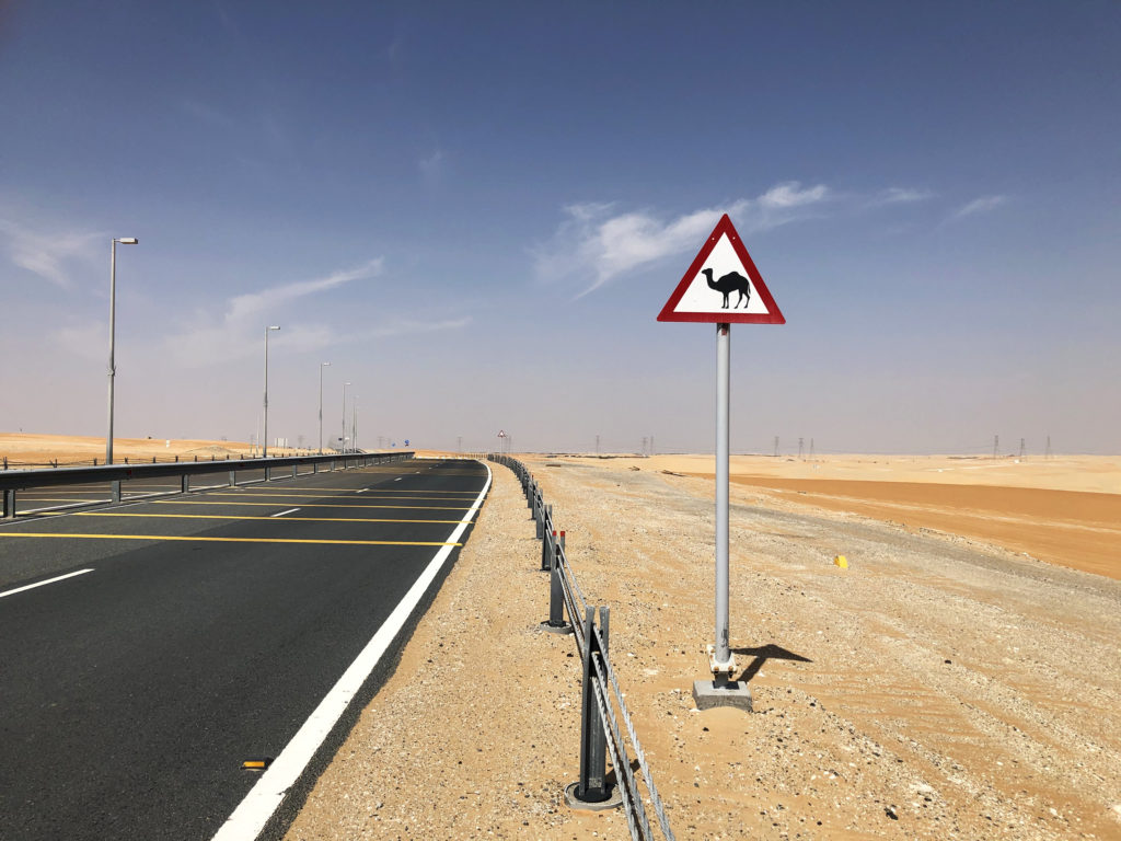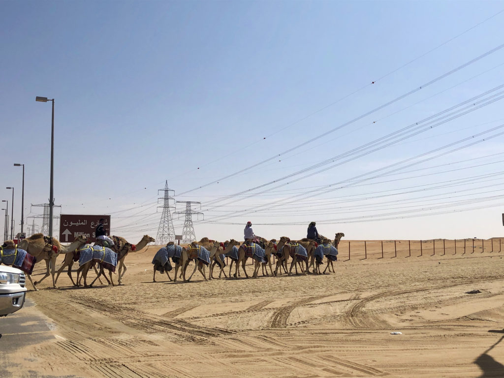Après quelques courses, nous entamons la remontée vers le nord afin d’être à Dubaï en fin de journée. La traversée du désert réserve quelques surprises, comme la traversée de dromadaires après leur entrainement à la course, ou encore des arrêts de bus au milieu de nulle part.