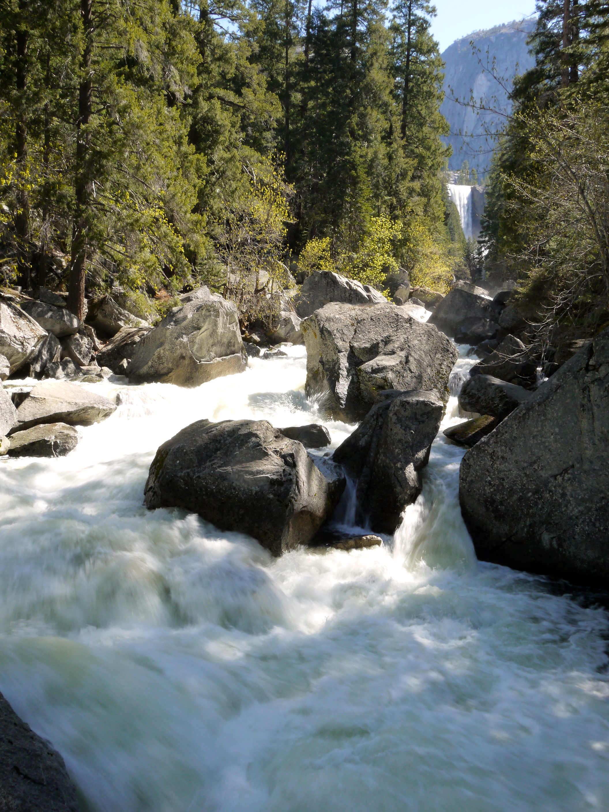 Pas grave, un bon petit-déj et c’est reparti pour découvrir un autre coin de Yosemite ! Ce matin, on fait la randonnée jusqu’à Vernal fall, une autre cascade moins haute mais plus large que les autres qu’on atteint après une bonne heure de marche. Sur le chemin, on voit encore plein d’écureuils et des geais bleus qui sont magnifiques en plein vol. A la fin de la rando, pour aller au pied de la cascade, on marche sur des escaliers taillés dans la roche et on prend une bonne douche fraîche !!