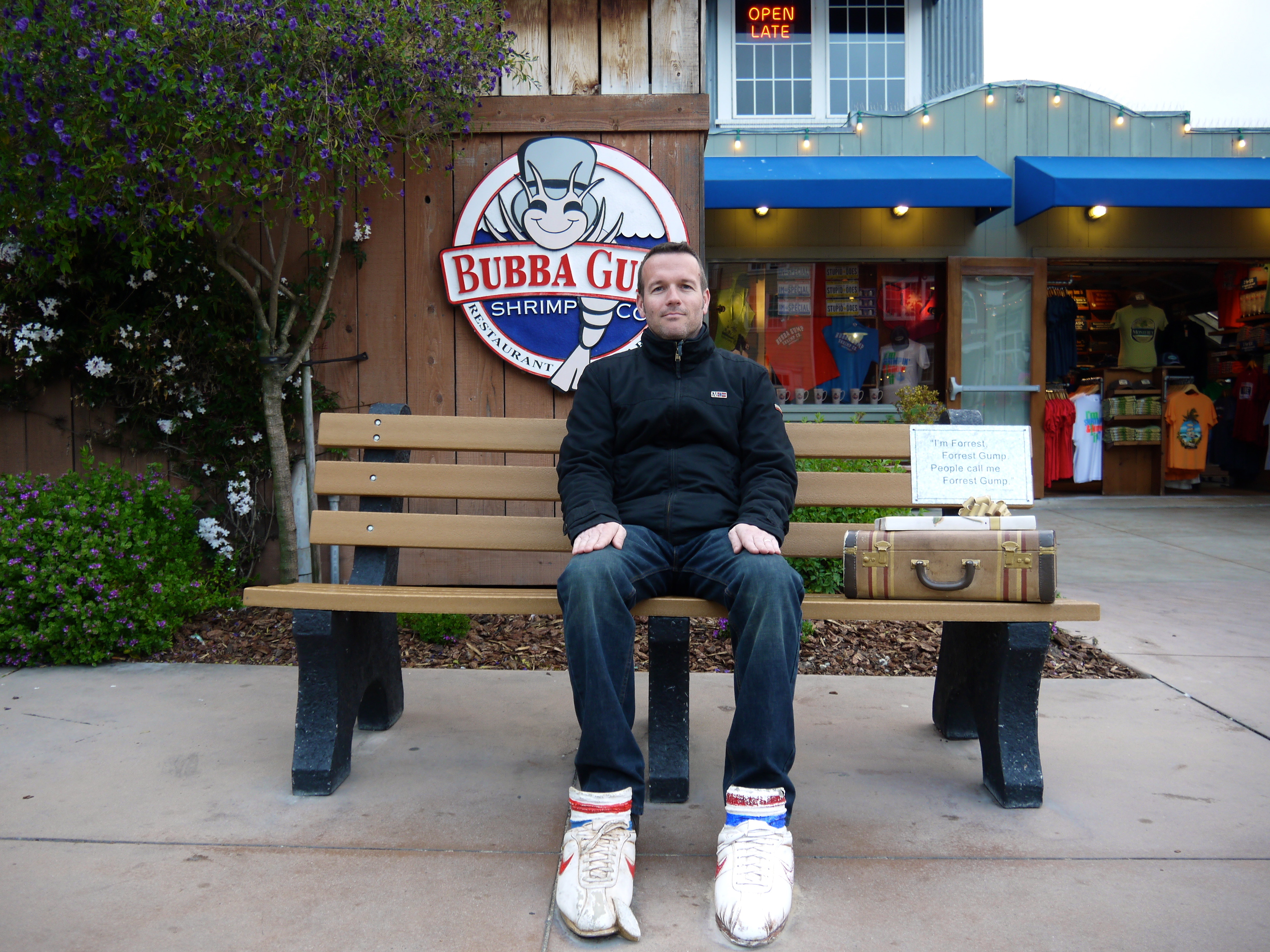 Après cette dernière immersion dans l’immense et magnifique parc de Yosemite, on prend la direction de la côte Pacifique en faisant un arrêt à Mariposa pour acheter de quoi pique-niquer. Quelques miles avant Monterey, on voit une bande de nuages apparaître le long de la côte et la température baisser alors qu’on a fait la route sous un grand soleil et 30°. Arrivés à Monterey vers 17h (et 19°), on fait une pause dans une vraie chambre d’hôtel (!) et on va dîner chez Bubba Gump Shrimp, le resto inspiré de l’histoire de Forrest Gump ! Très touristique, dans le quartier tout aussi touristique de Cannery Row (les anciennes conserveries de sardines ont été reconverties en restos et boutiques), mais bonnes crevettes et surtout une vue panoramique sur la baie de Monterey. Pendant tout le repas, on a observé un lion de mer (ou une loutre ?) qui prenait son bain en compagnie d’une mouette !
