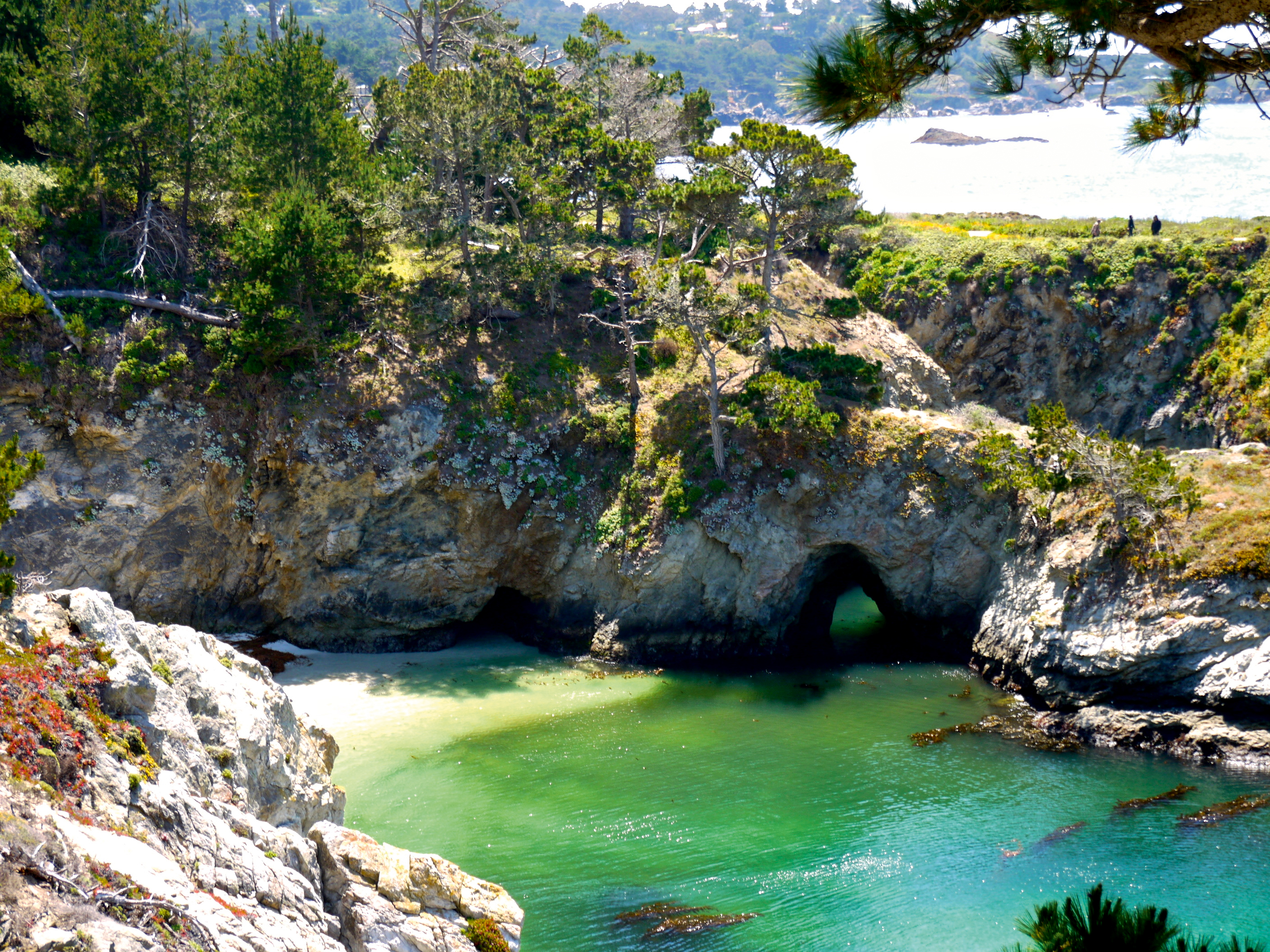 On fait quelques courses au supermarché pour le pique-nique (ravis de trouver des fruits énormes comme on n’en cultive qu’en Californie) et on file au sud de Carmel pour visiter Point Lobos State Reserve. C’est un espace naturel préservé qui abrite de nombreux oiseaux, lions de mer et loutres. Les balades permettent de voir des paysages  très beaux et sauvages mais on est en plein vent ! Par certains aspects, ça fait penser à la fois à la Bretagne et à la Corse…