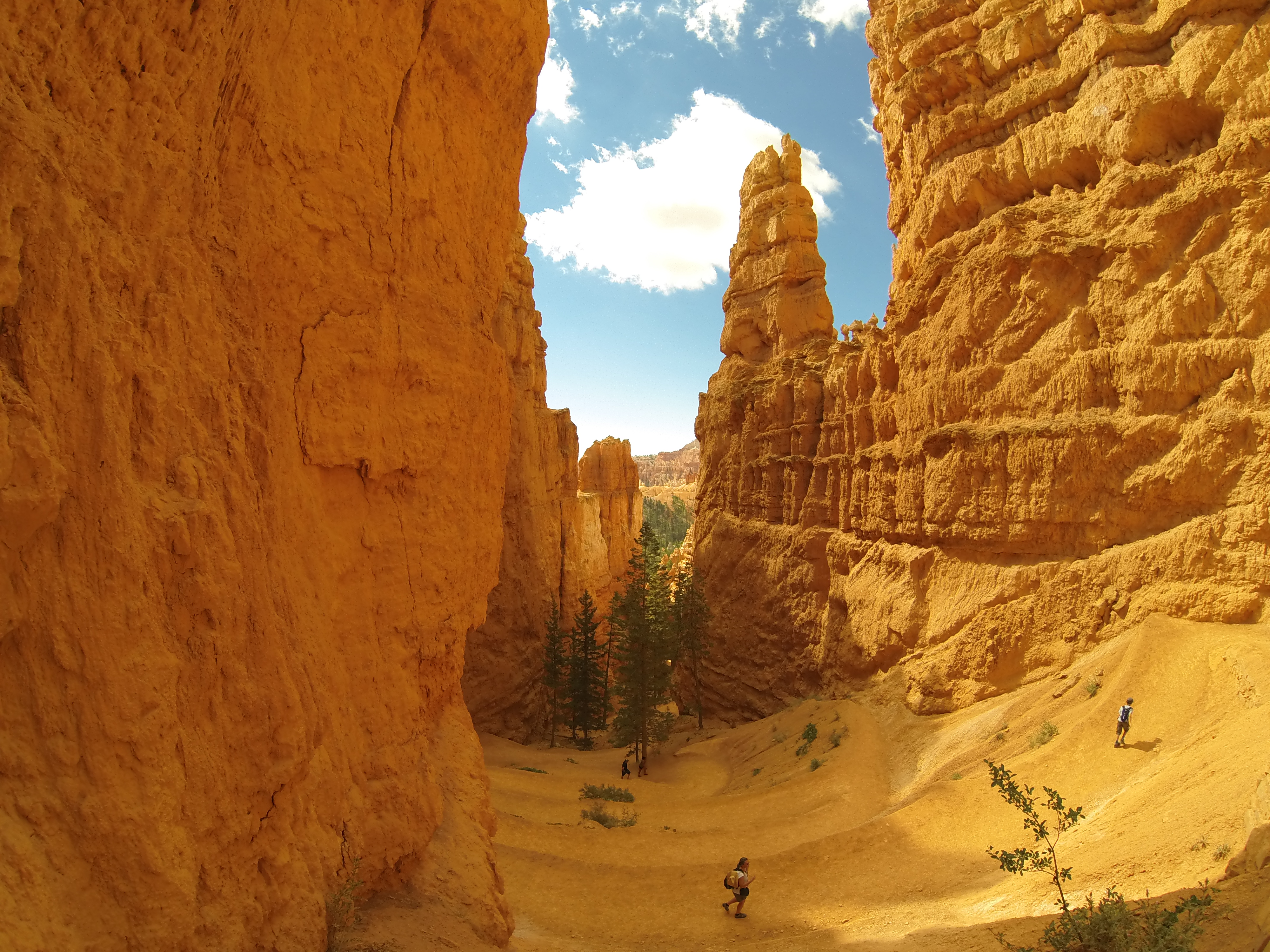 Durant ce deuxième voyage, Bryce canyon est le seul parc national que nous ayons déjà fait et où nous retournons avec plaisir. Même Axel, qui avait pourtant piqué une grosse colère l’an dernier lors de la rando, a marché cette fois sans râler entre les hoodoos. On voulait faire une boucle Navajo + Peek a boo loop, mais un éboulement nous en a empêchés. Comme l’année dernière il y avait aussi eu un éboulement sur une partie de Navajo loop, on a découvert la descente de Wall Street que nous ne connaissions pas.