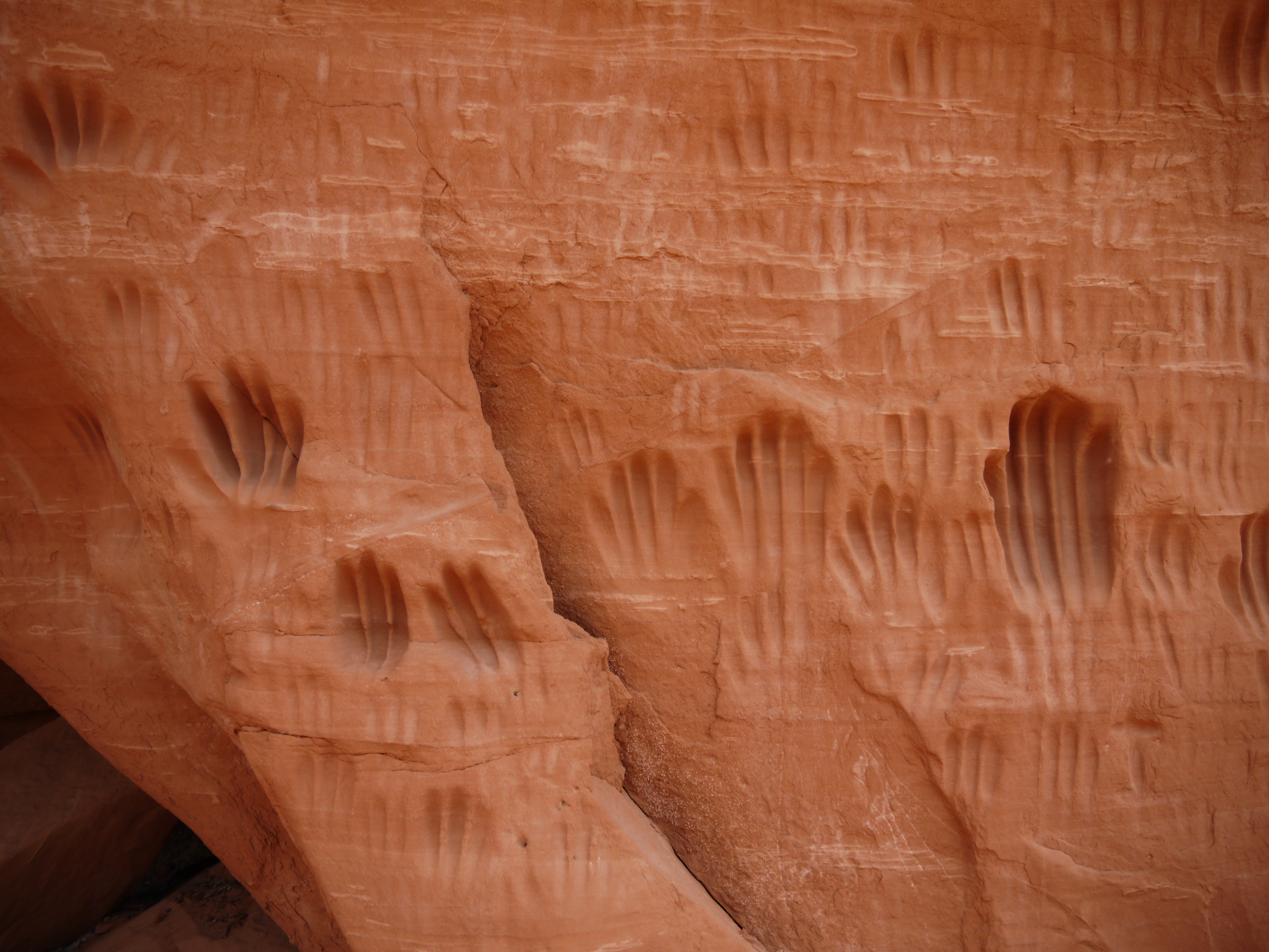Puis nous rentrons « chez nous », à Kodachrome Basin, pour faire la très jolie randonnée de Panorama trail. Au bout de quelques centaines de mètres, on arrive à Indian Cave où on peut voir ces marques énigmatiques dans la roche :