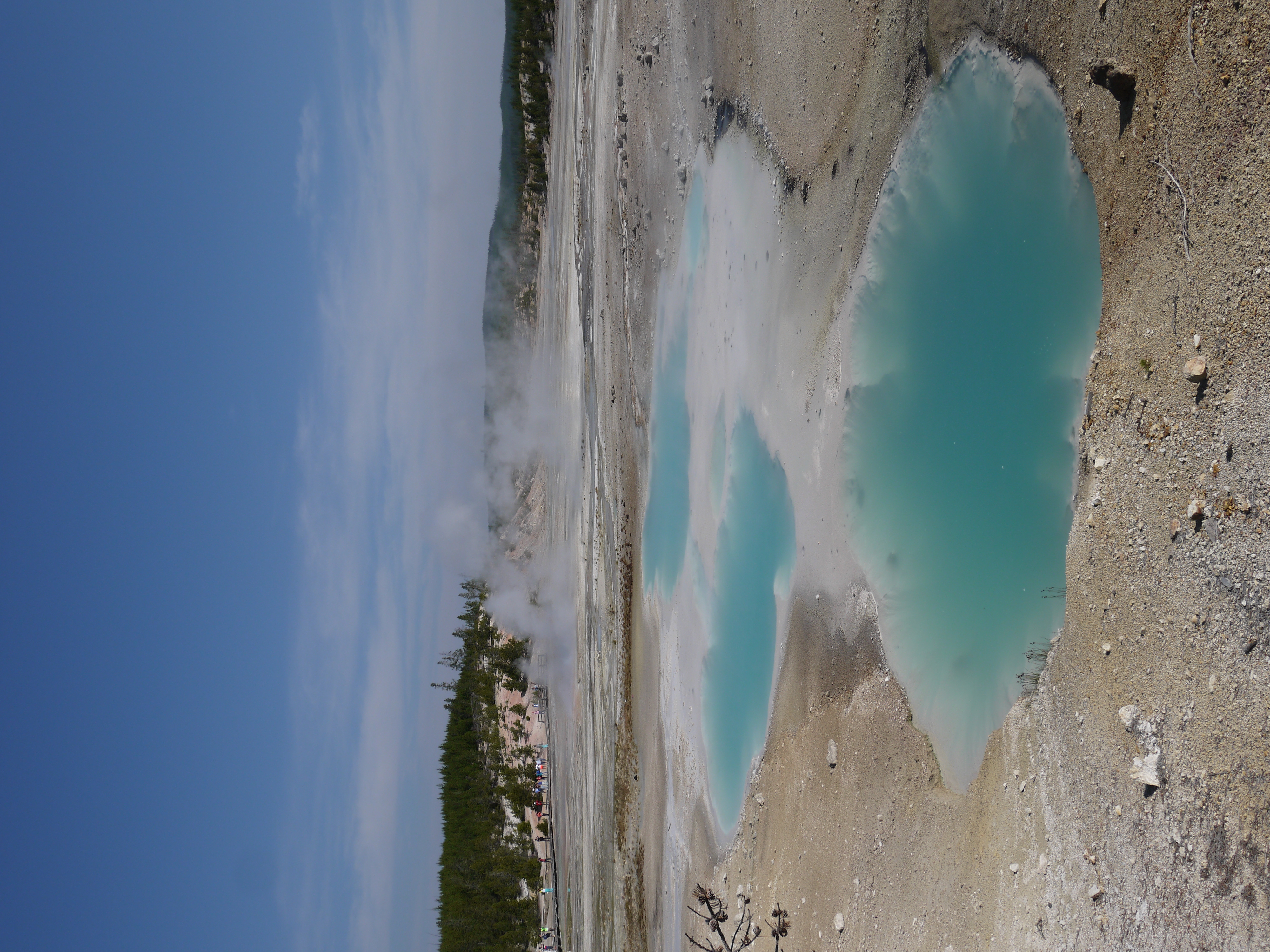 Ont fait Lower Terrasse à pied, sur le parcours aménagé en pontons de bois, puis Upper Terrasse en voiture. Autant le premier est sympa, autant le deuxième ne casse pas trois pattes à un canard. Les sources de Upper Terrasse se sont taries peu à peu et sont presque entièrement sèches et grises… Lower terrasse subira t’elle le même sort bientôt ?