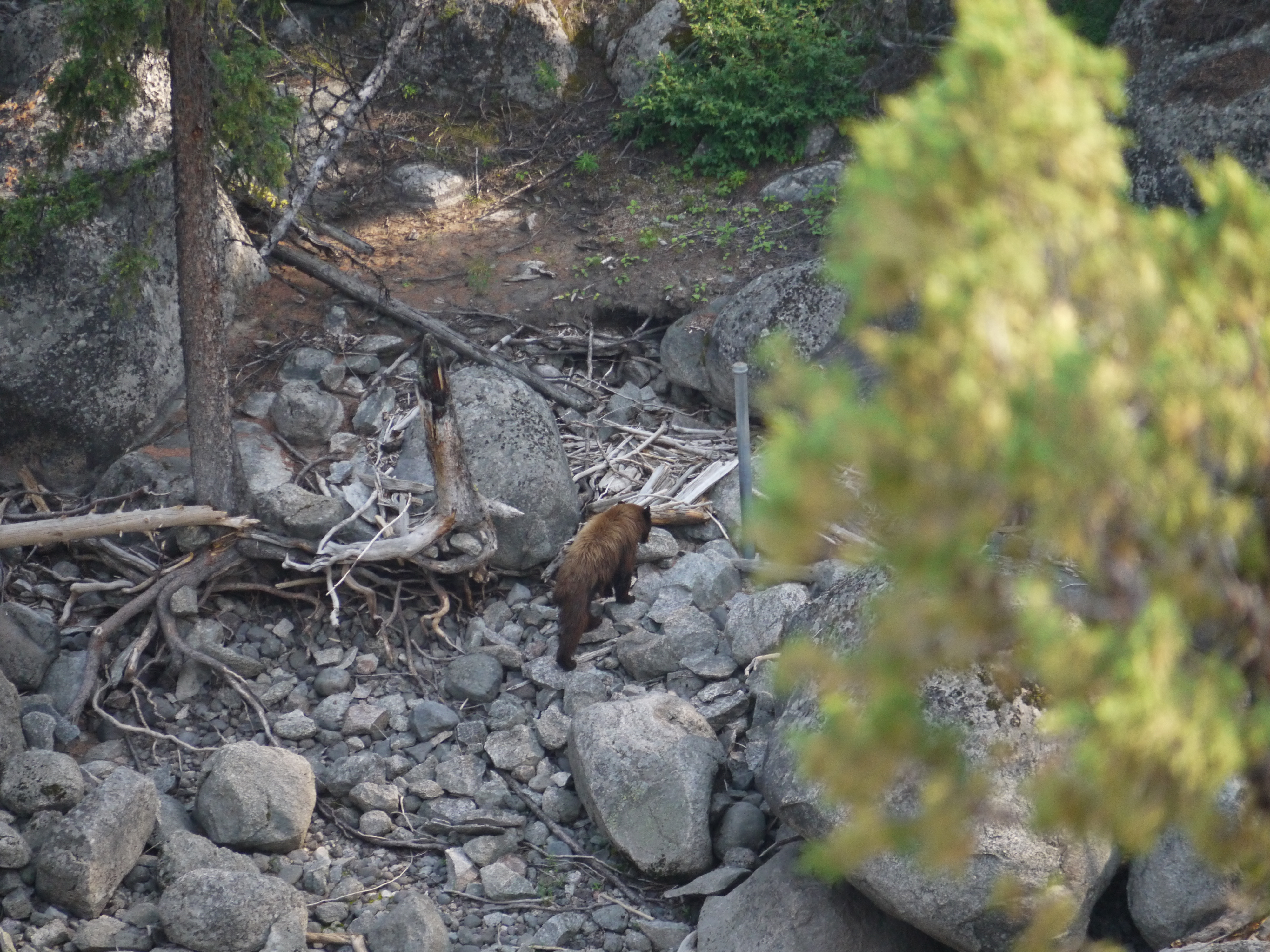 Après quelques miles, on voit des voitures stoppées sur le bord de la route… on s’arrête et… trop tard ! C’était un ours mais il a disparu derrière les rochers. Laurent commence à désespérer d’en voir un !