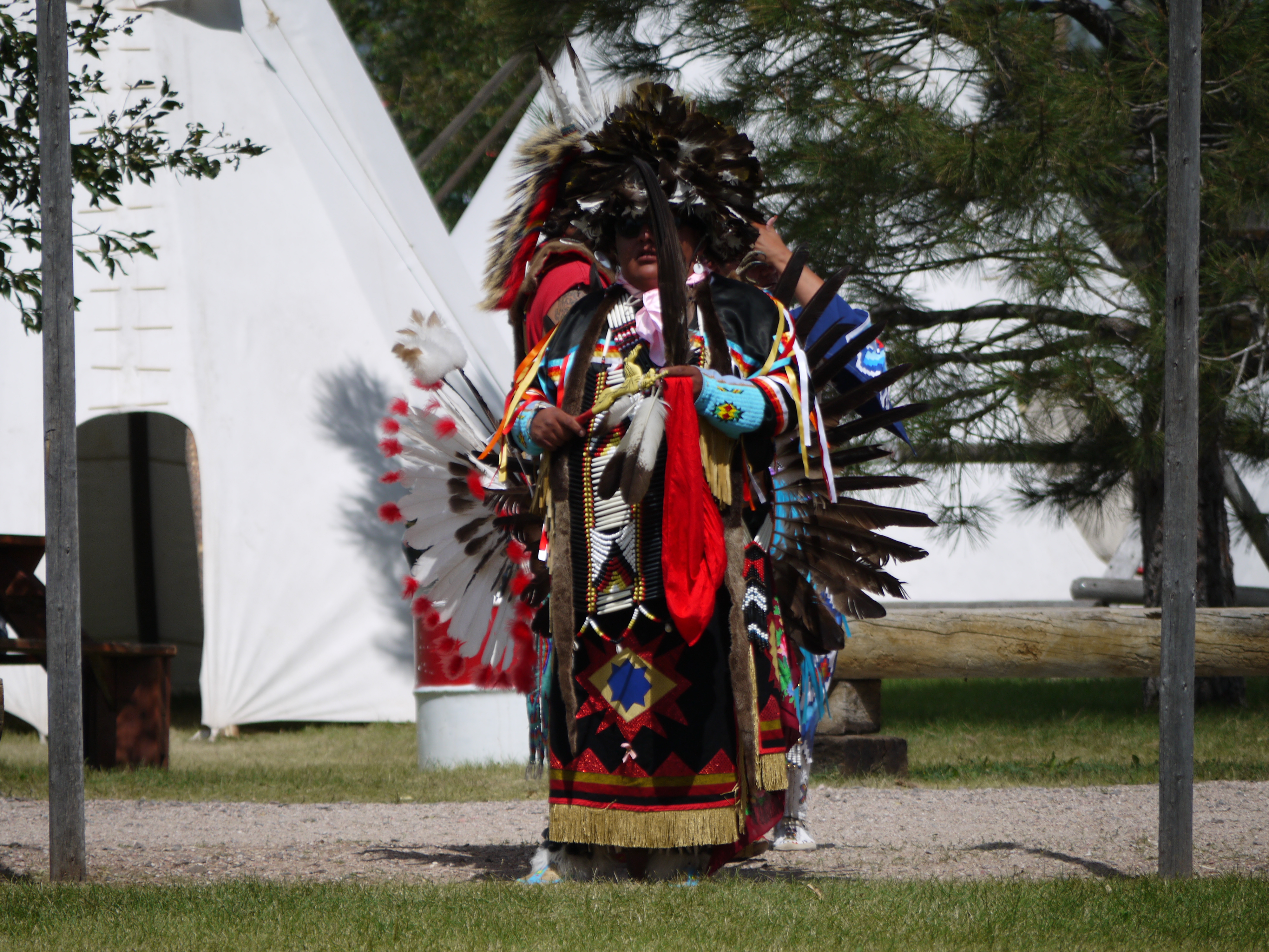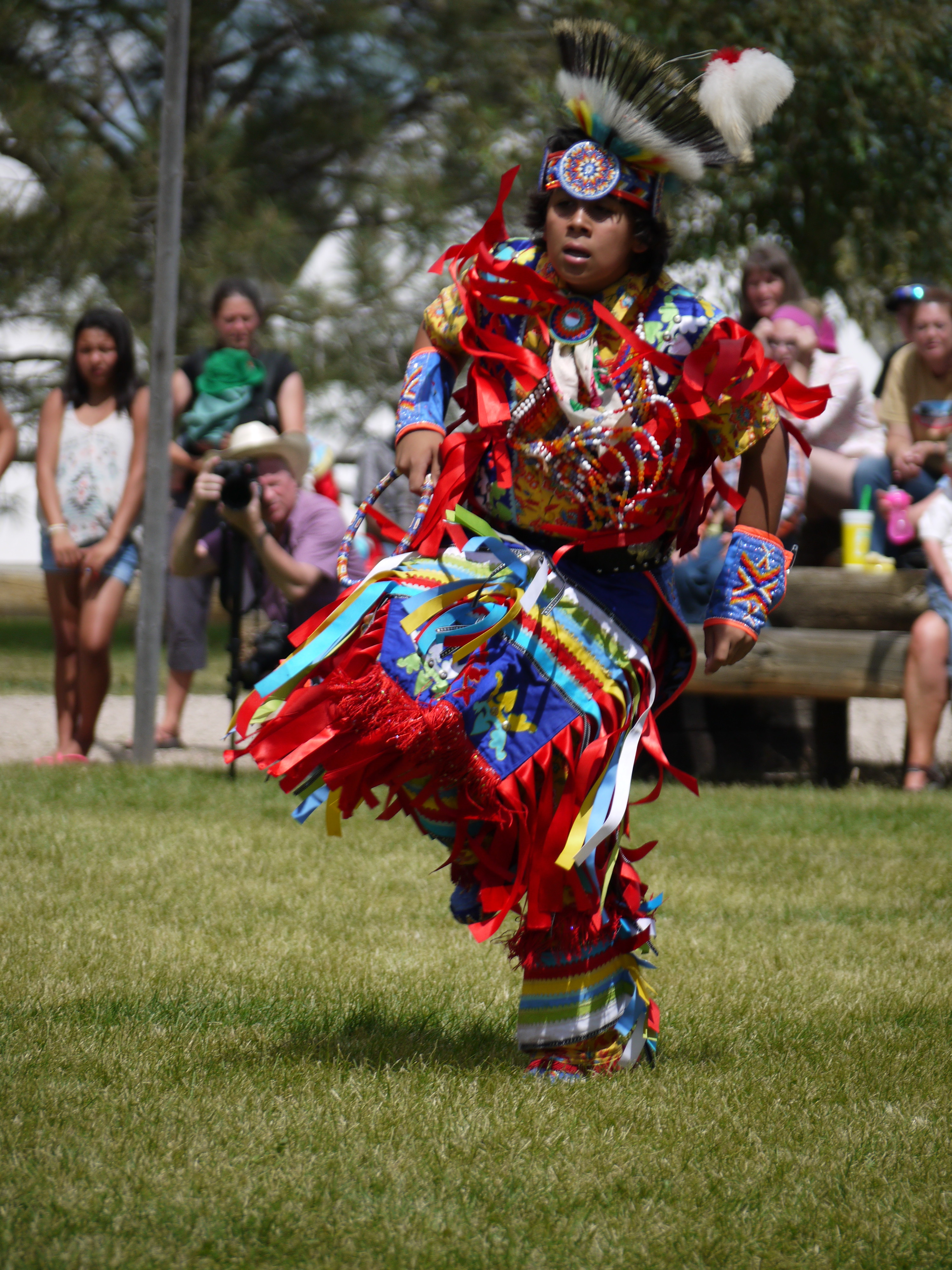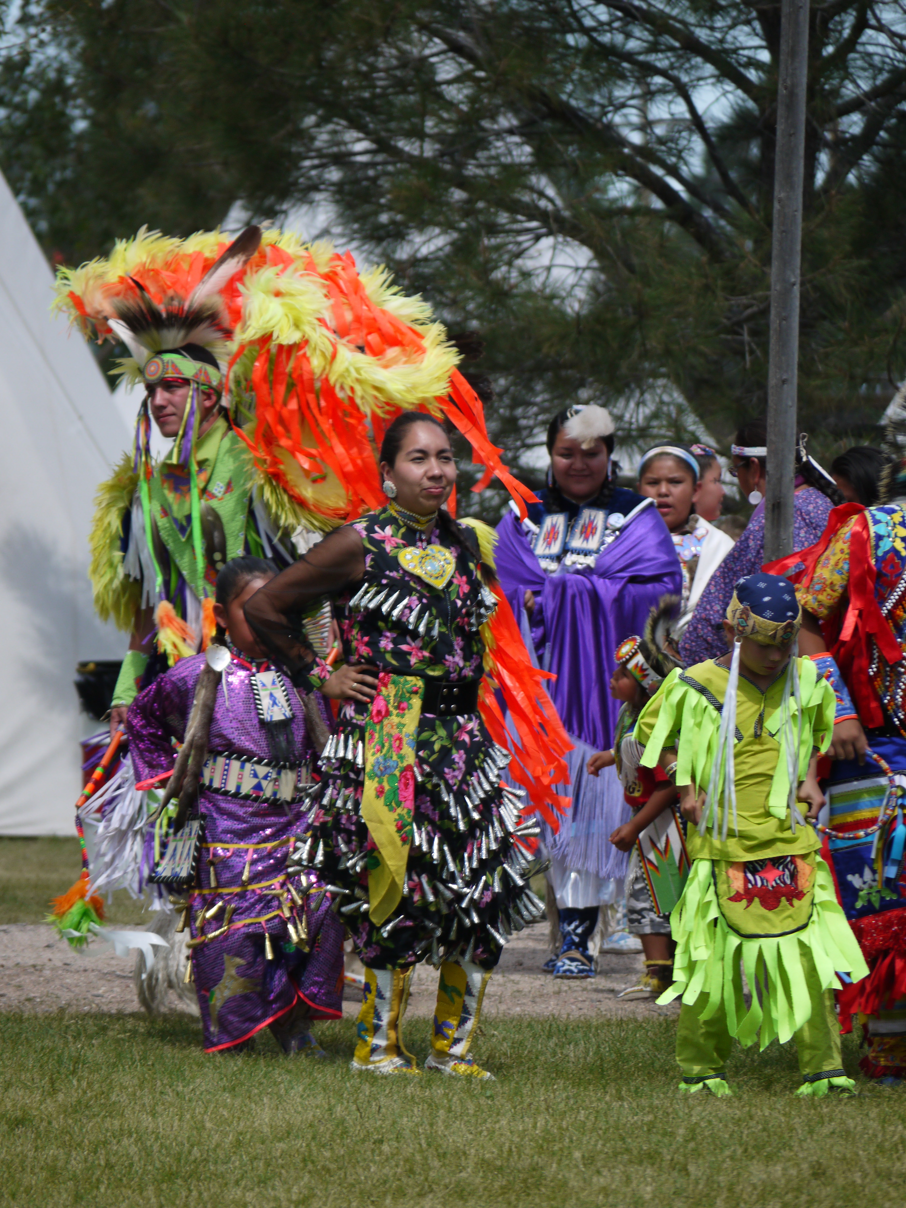 Avant le grand spectacle des grands cowboys sur leurs grands chevaux et leurs gros buffles, il y a le petit spectacle : celui des indiens et de leurs danses traditionnelles. Je les soupçonne d’ailleurs de faire la danse de la pluie depuis 2 jours car on a subi quelques orages violents depuis Hulett !!! En tous cas, dès qu’ils se mettent à chanter en tapant sur leur grosse caisse et à danser sous leurs parures, la magie opère. On est pris aux tripes par les chants lancinants et le côté mystique des danses.