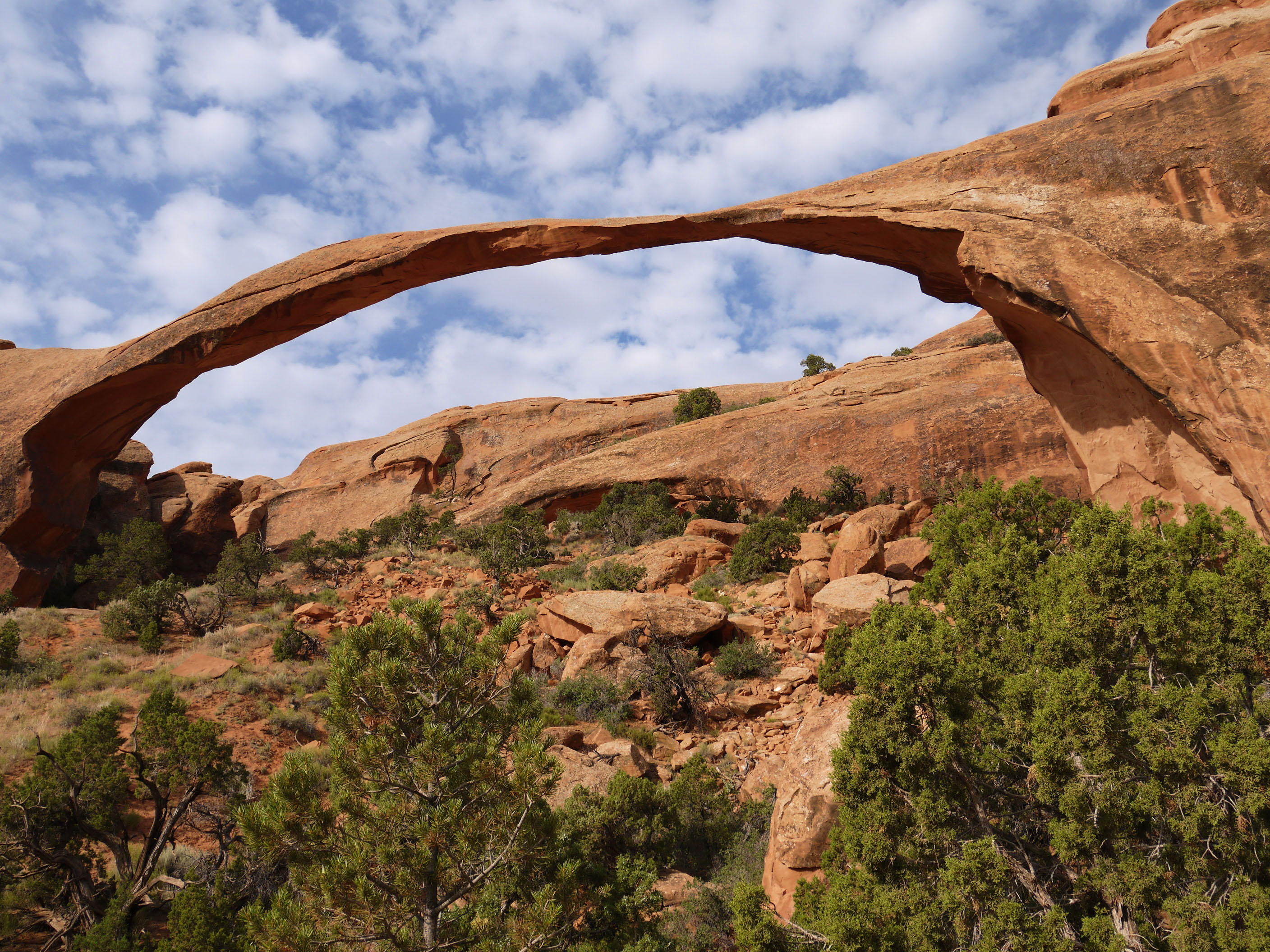 Landscape arch, l’une des plus grandes arches du Monde (32 m de haut et 88 m de long) et l’une des stars du parc.