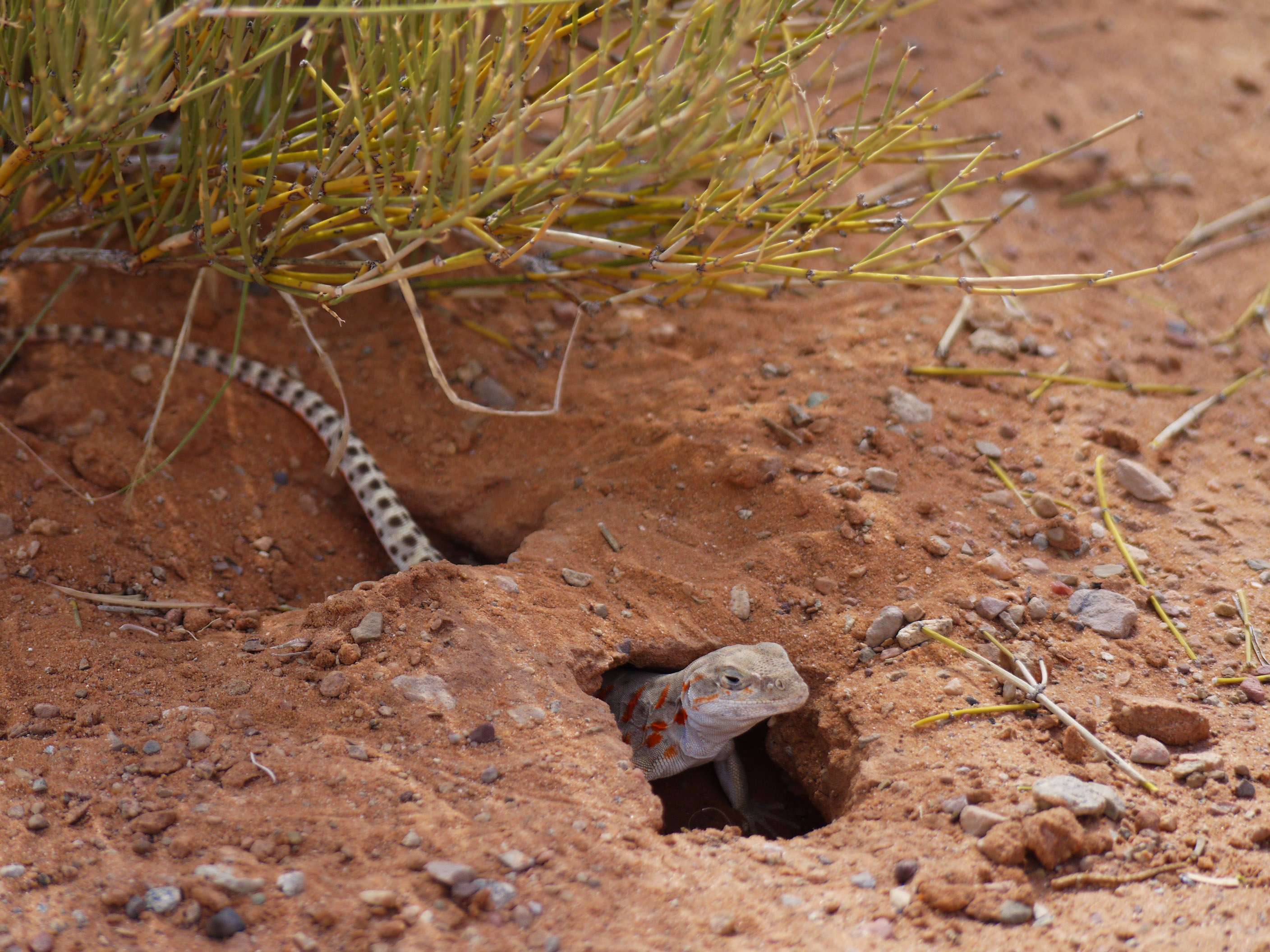 On marchait tranquillement avec Axel quand il a vu ce serpent. Il s’est mit à crier « Aaaahhh un serpent, un serpent » et a fait demi-tour en courant comme une flèche vers son père et Léo. Bêtement, je l’ai suivi en courant aussi alors que je n’avais même pas vu le serpent ! Il n’était pas très gros et paraissait finalement inoffensif pour un serpent à sonnette, plus paresseux qu’agressif. Quant aux lézards, ils sont jolis avec leurs tâches oranges, et moins impressionnants que les serpents ! Mais ils sont gros quand même !
