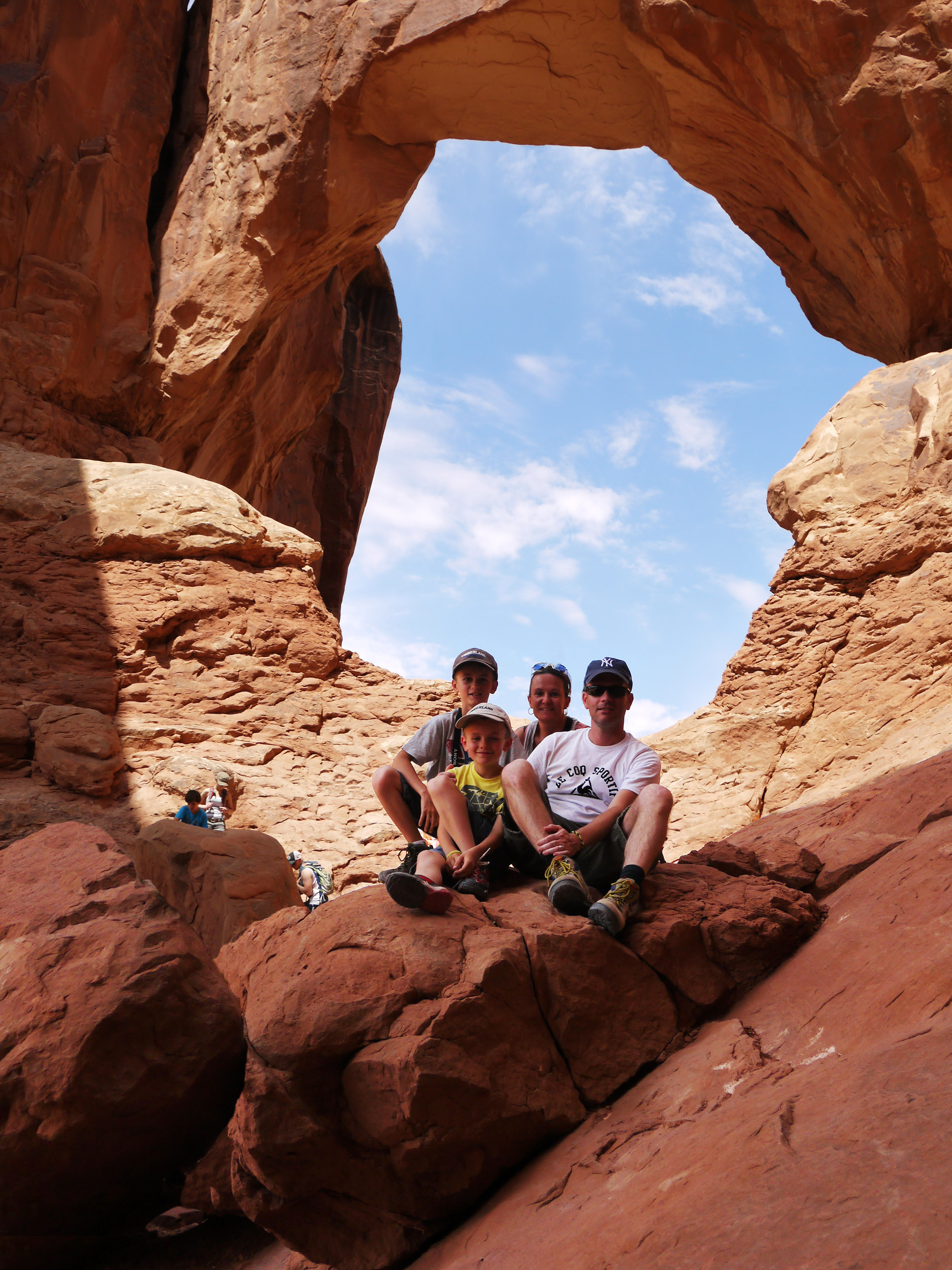 Un petit américain de l’âge d’Axel nous propose de nous prendre en photo sous l’arche. Pas trop mal cadrée la photo !