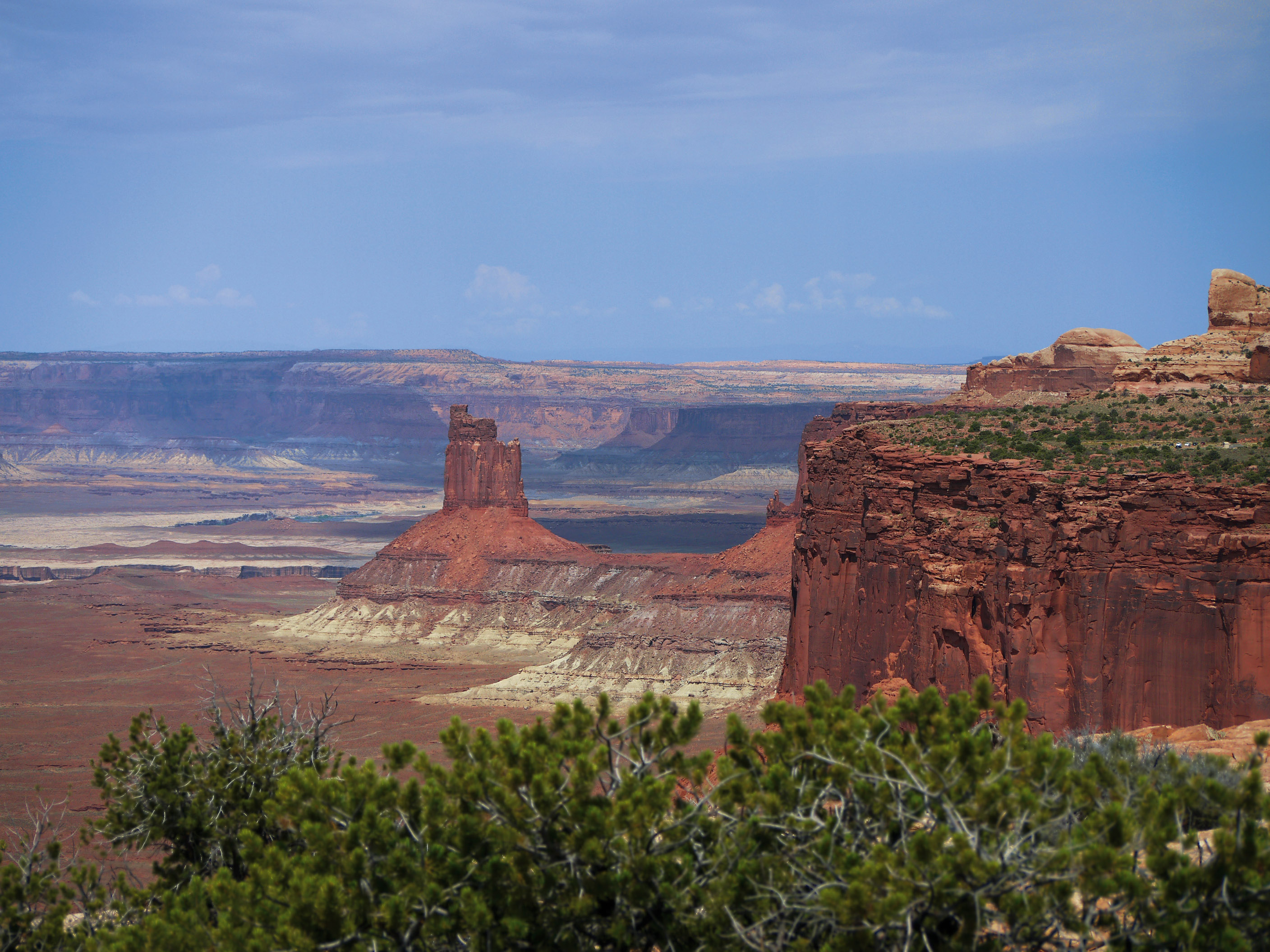 Après cette petite visite à Mesa arch, les points de vue sont tous plus beaux les uns que les autres. La vue porte loin sur les Needles et the Maze, les autres secteurs du parc de Canyonlands. Le paysage façonné par le Colorado et la Green river est saisissant.
