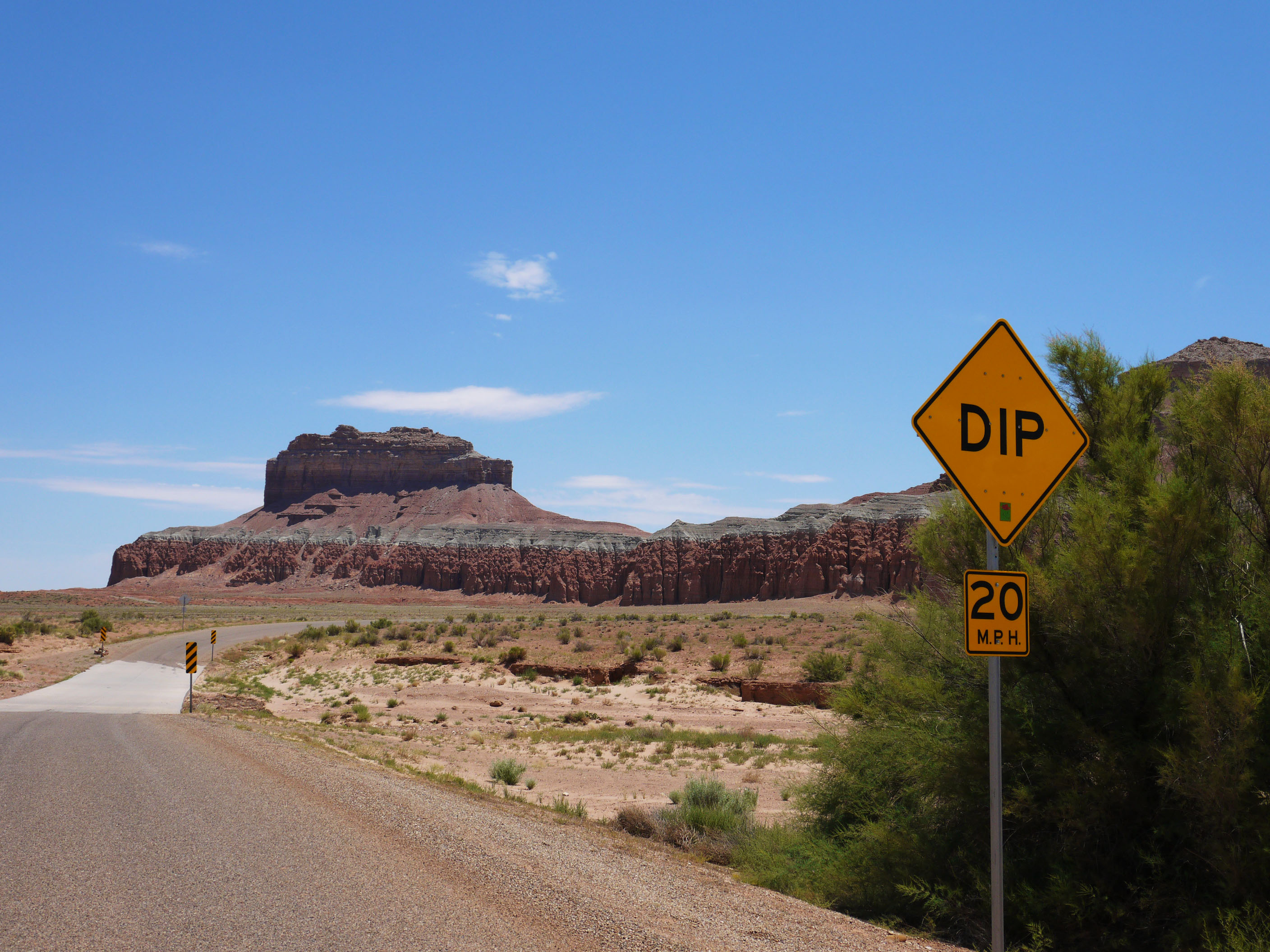 Juste à 5 ou 6 miles de là, se trouve Little Wild Horse canyon. C’est un slot canyon (canyon très étroit creusé et sculpté par l’eau), dans lequel on peut marcher s’il n’y a pas de pluie annoncée (sinon, c’est hyper dangereux car l’eau monte très vite). Donc, en sortant de Goblin Valley, on se renseigne auprès du ranger de service, qui nous déconseille d’y aller car il y a 20% de risque de pluie aujourd’hui. Mince alors !!