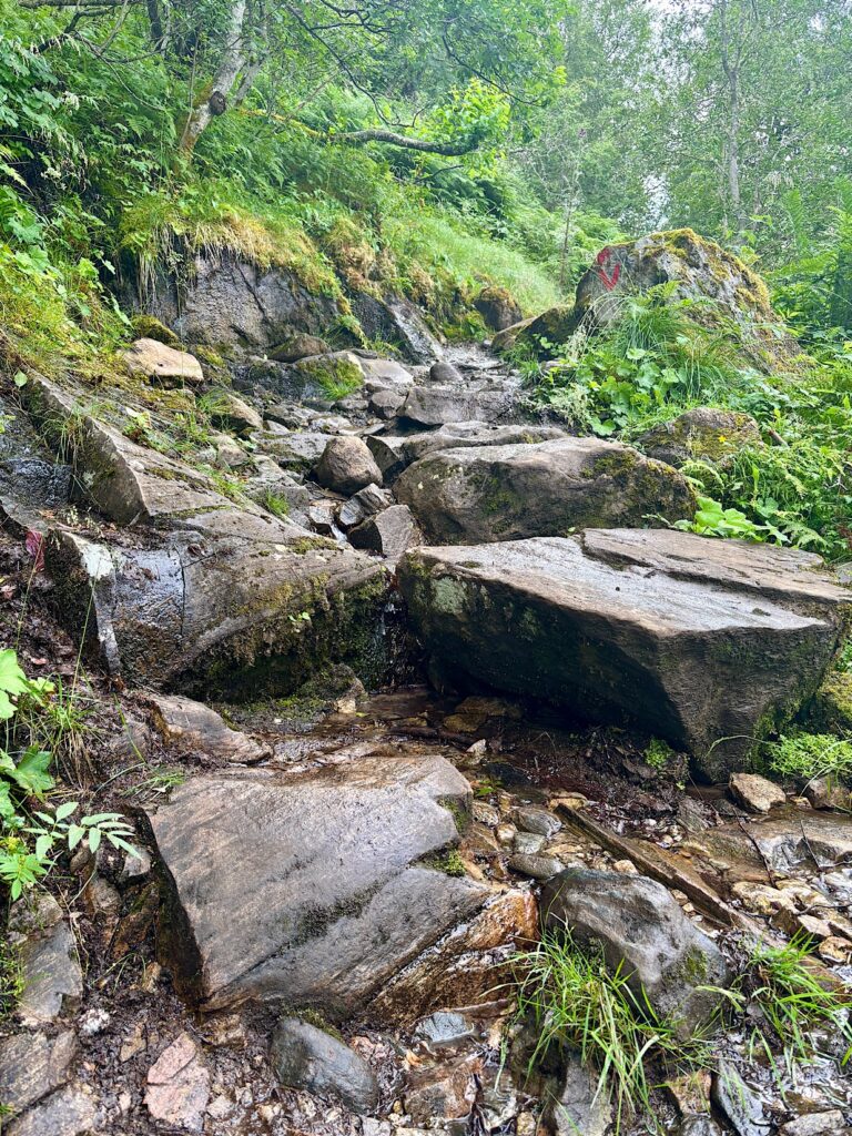 Je n’ai pas pensé à prendre de photos sur les portions les plus abruptes, j’avais besoin de mes mains pour progresser dans les rochers et me tenir aux câbles quand il y en avait ! Mais sur les parties les plus faciles, voilà à quoi ça ressemble :
