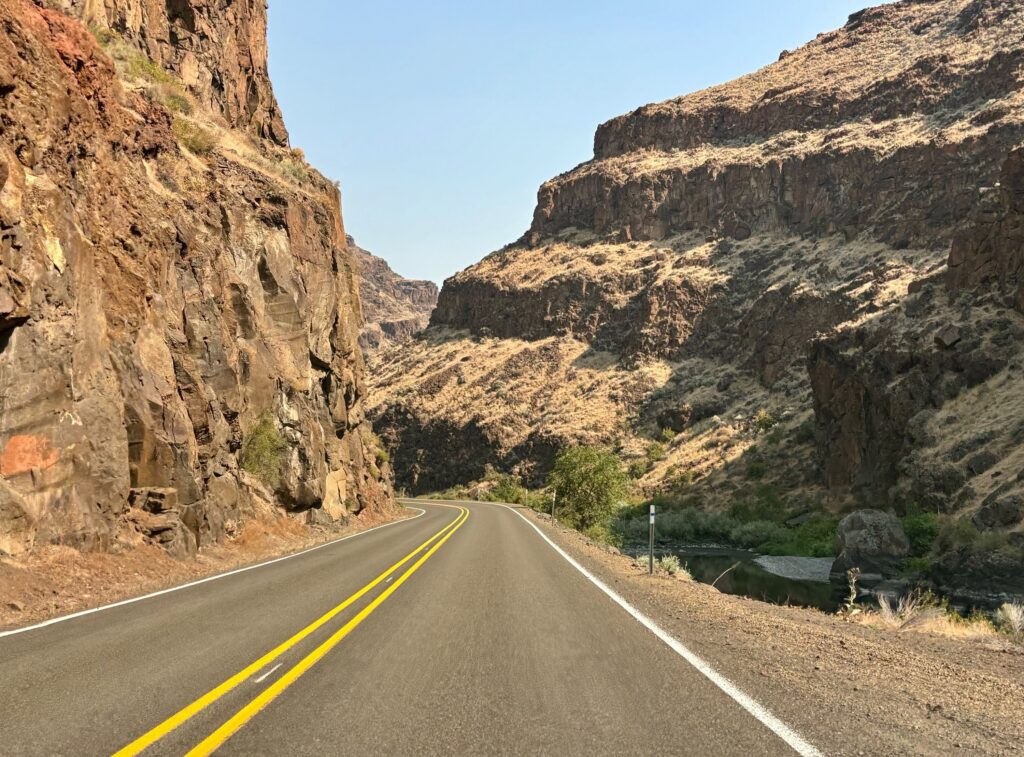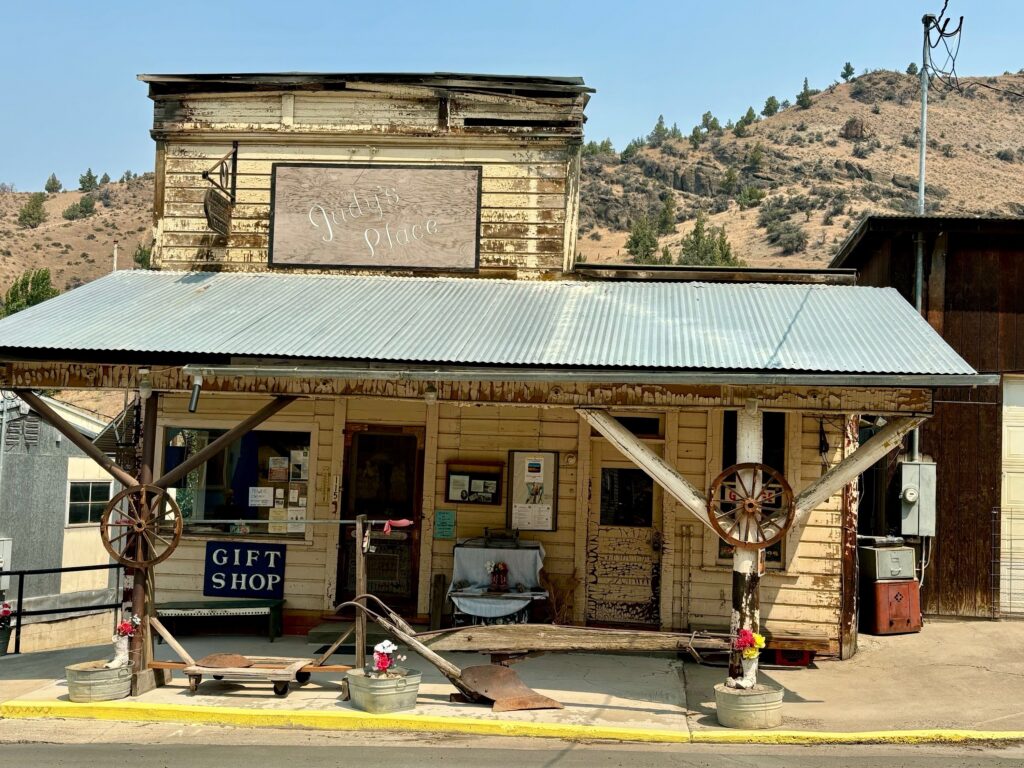 Pour déjeuner, nous nous arrêtons à Mitchell. Un village encore plus petit que Dayville et encore plus dans son jus. Le problème c’est que l’incendie a détruit les lignes électriques (ils sont en train de remplacer les poteaux en bois) et, comme il n’y a plus d’électricité, la brasserie est fermée. Quelle déception ! Heureusement, il nous reste de quoi pique-niquer.