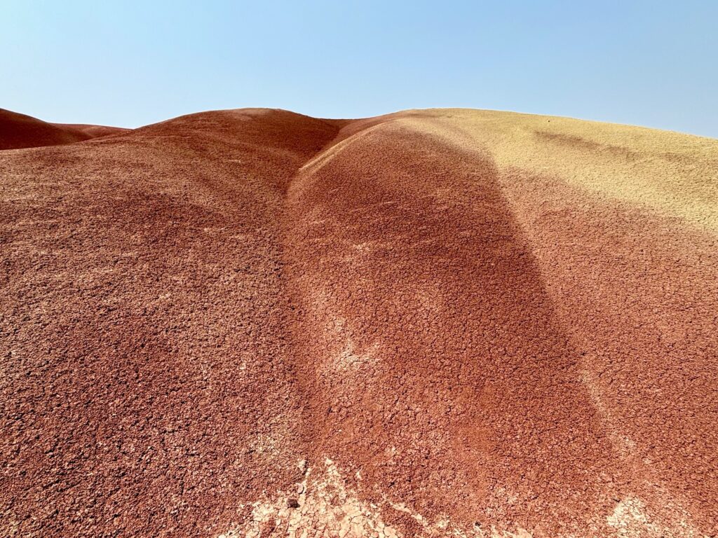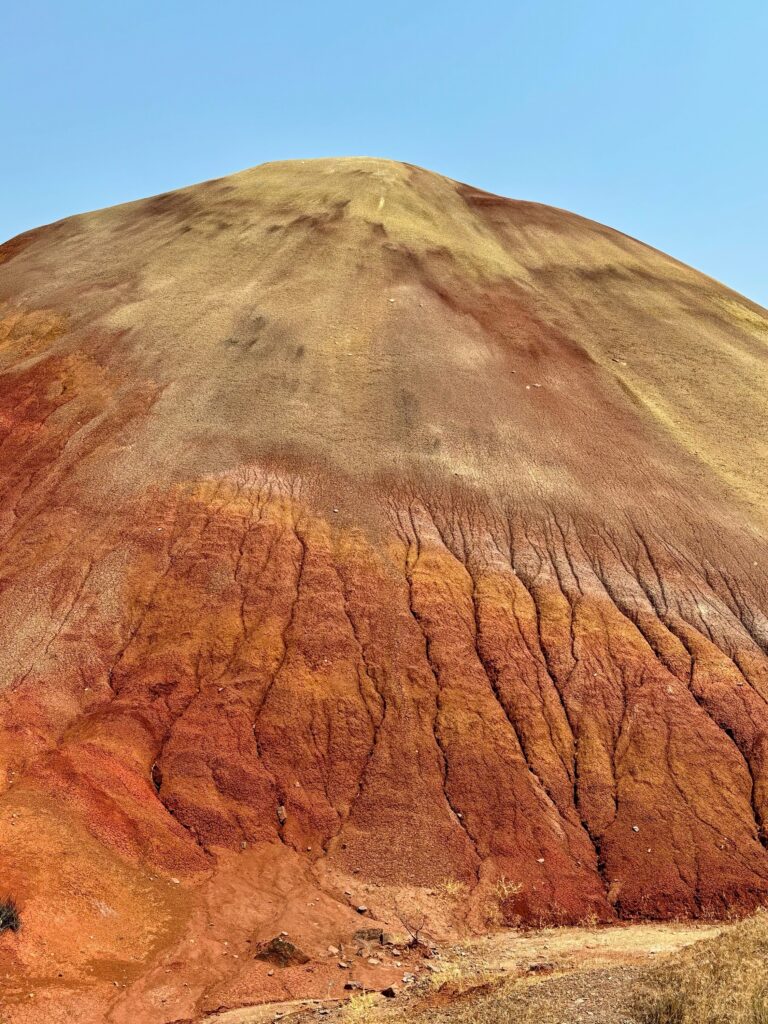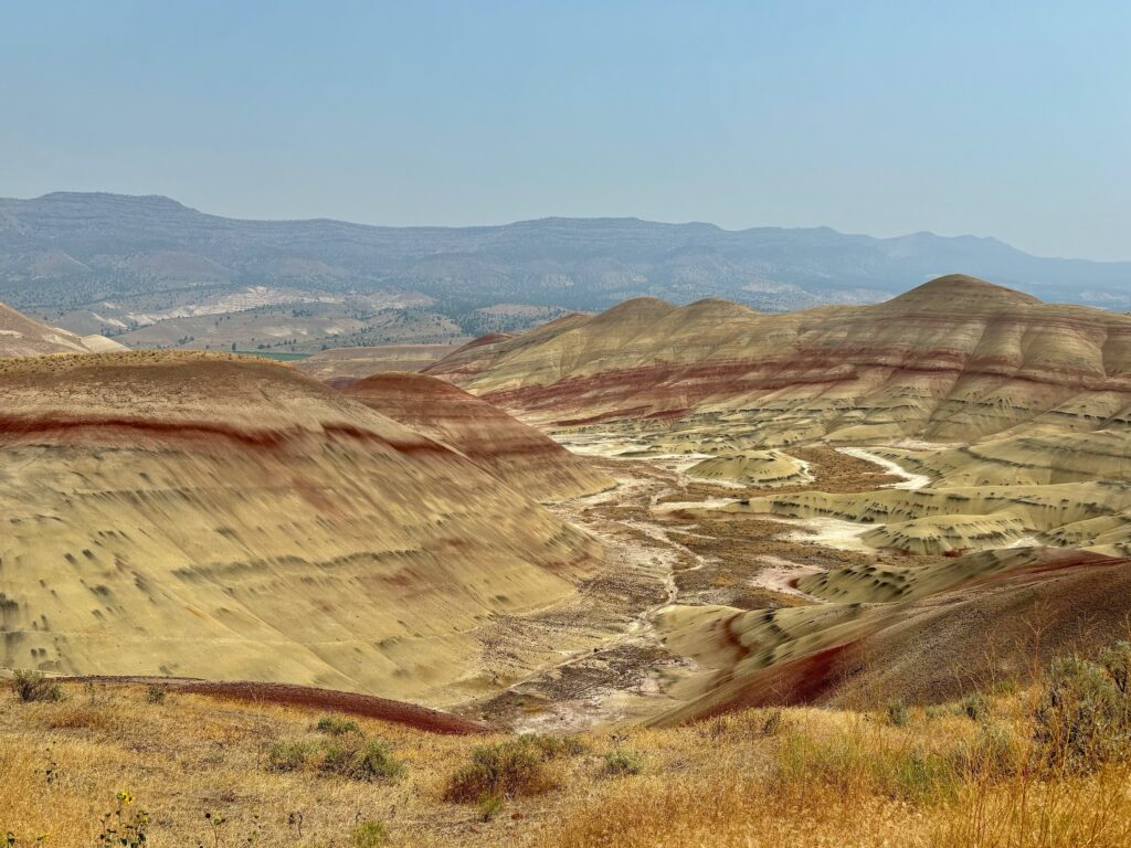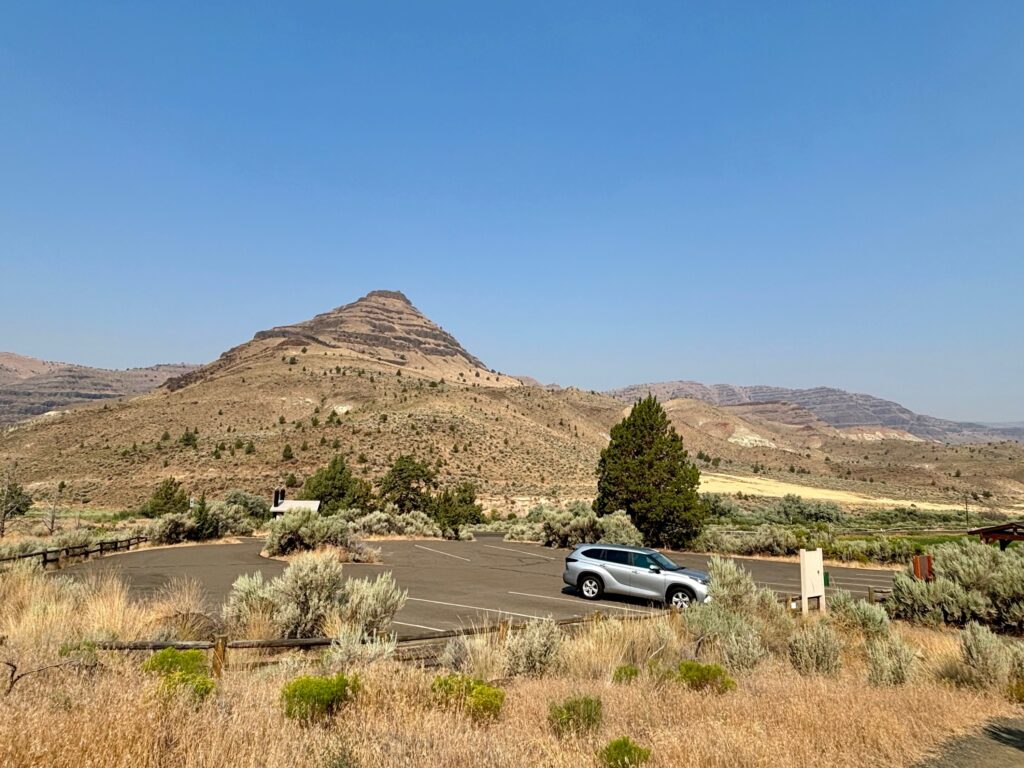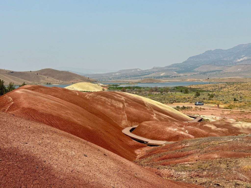 Quelques kilomètres plus loin, nous arrivons à Painted hills. Ils fait 41° maintenant ! On décide de faire tous les points de vue et petites marches, en revanche on laisse tomber Caroll Rim trail qui ne fait pourtant que 2,5 km. Ça monte en plein soleil et dans cet environnement très minéral, le ressenti est bien plus chaud que 41°.