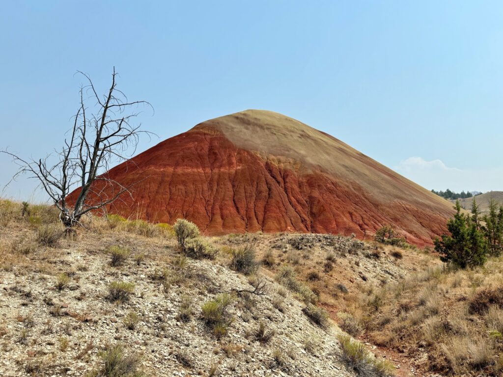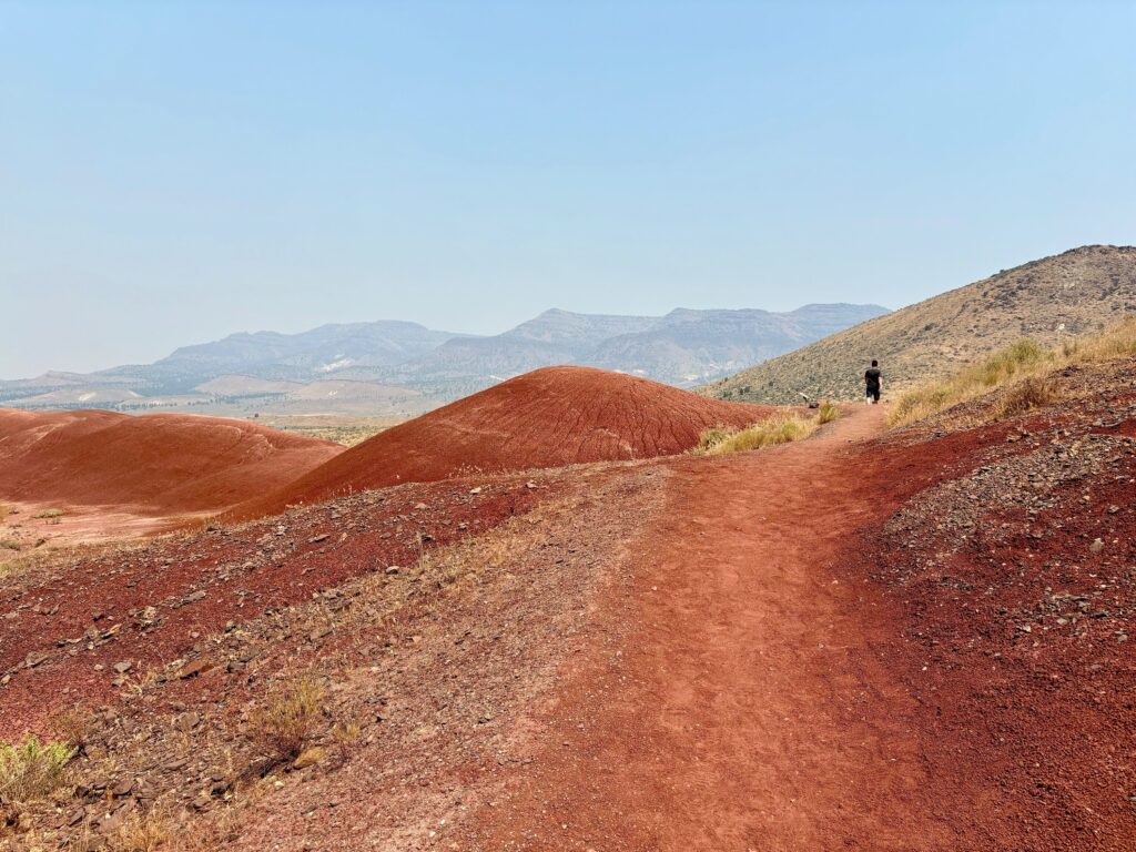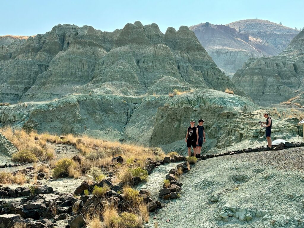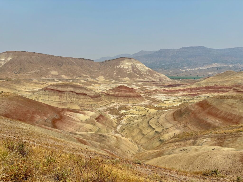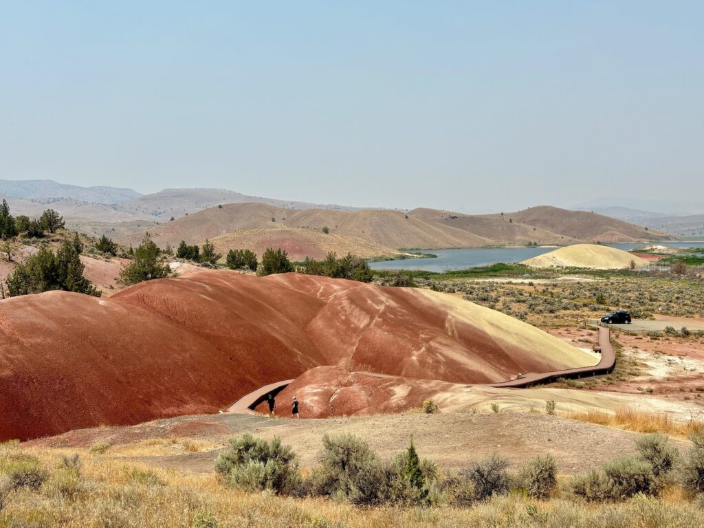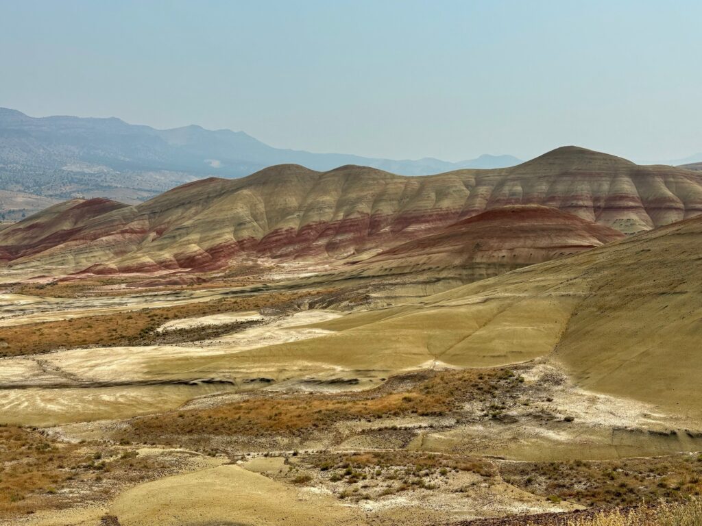 Quelques kilomètres plus loin, nous arrivons à Painted hills. Ils fait 41° maintenant ! On décide de faire tous les points de vue et petites marches, en revanche on laisse tomber Caroll Rim trail qui ne fait pourtant que 2,5 km. Ça monte en plein soleil et dans cet environnement très minéral, le ressenti est bien plus chaud que 41°.