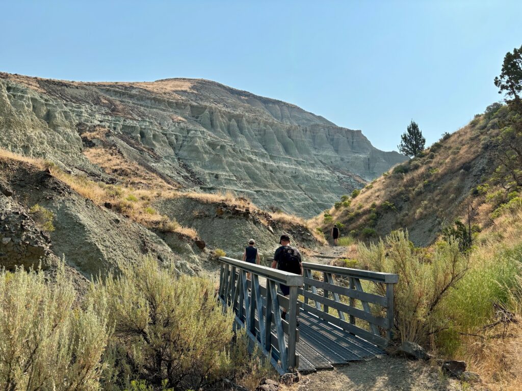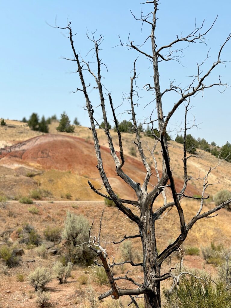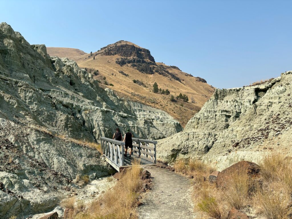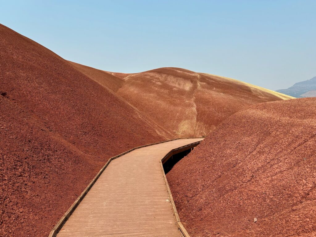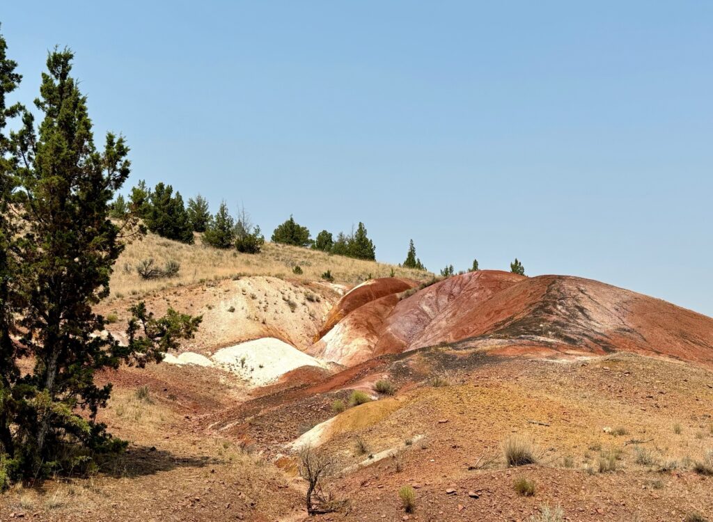 Quelques kilomètres plus loin, nous arrivons à Painted hills. Ils fait 41° maintenant ! On décide de faire tous les points de vue et petites marches, en revanche on laisse tomber Caroll Rim trail qui ne fait pourtant que 2,5 km. Ça monte en plein soleil et dans cet environnement très minéral, le ressenti est bien plus chaud que 41°.