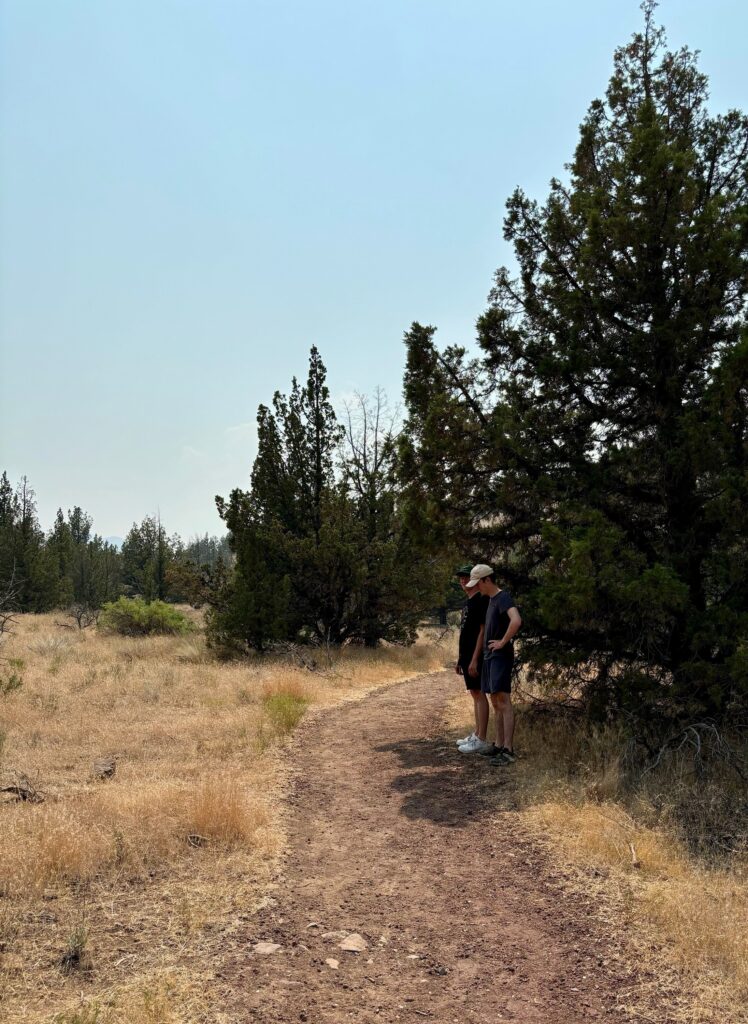 Pour découvrir les formations rocheuses de Blue basin (secteur Sheep Rock) il y a le choix entre un chemin de 5 km et un autre de 2 km. On se regarde… On va la jouer petits bras aujourd’hui ! Par cette chaleur et avec l’air pollué par les fumées, il faut s’économiser !