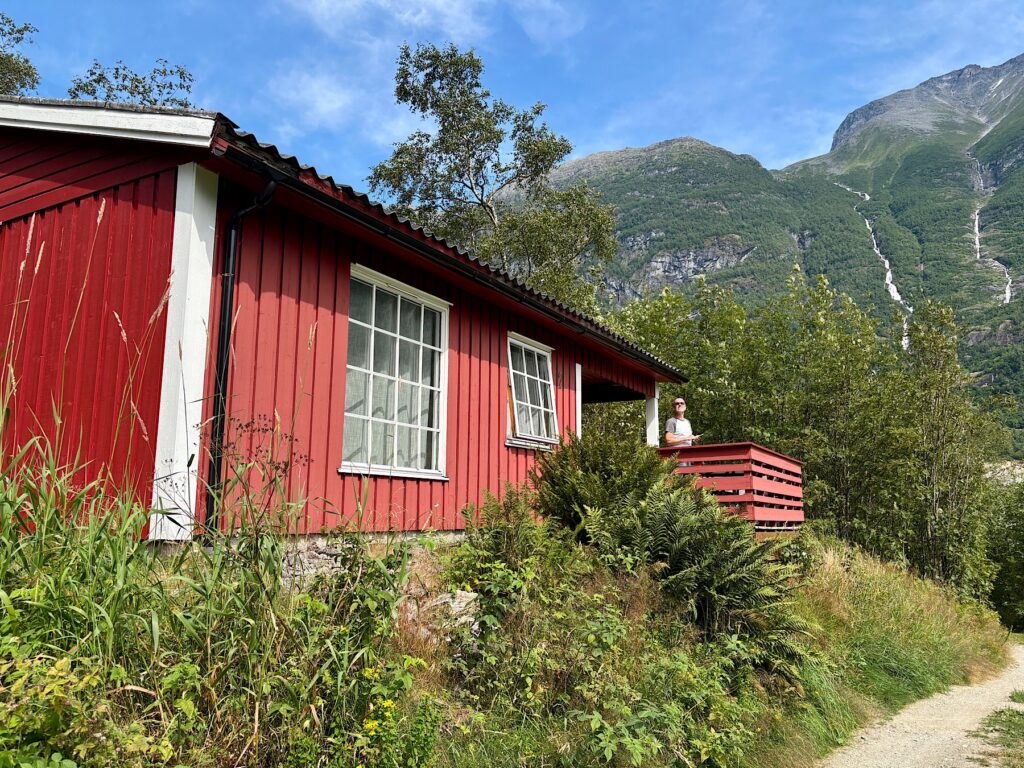 De retour dans notre petit chalet rouge, on profite d’une vue incroyablement belle sur le lac et les montagnes. On entend clairement le bruit des cascades tout autour de nous. Que c’est reposant et agréable.