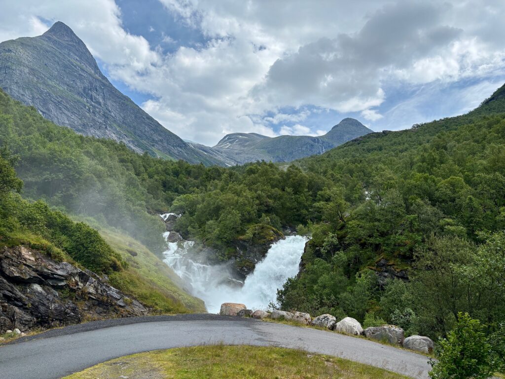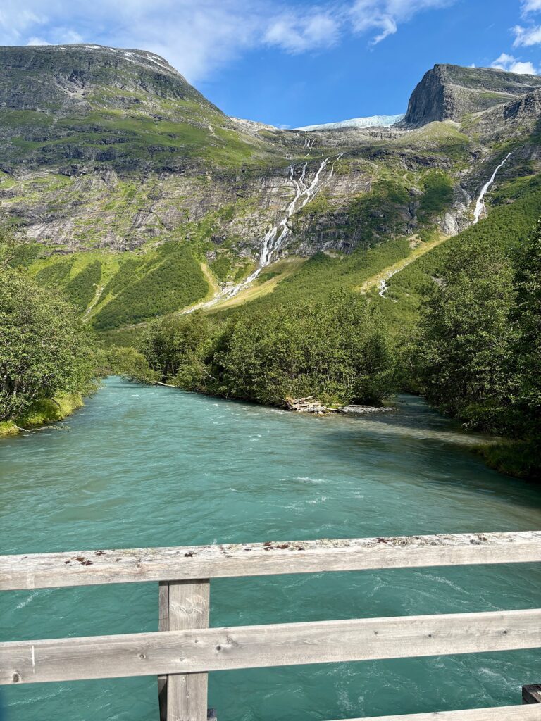 Le sentier est facile, on avale les 3 km en moins d’une heure. Les vues sur les cascades et sur le glacier Bødalsbreen sont très belles et la langue glaciaire est assez étendue. Du début de la rando jusqu’à la fin on a presque toujours le glacier en ligne de mire.