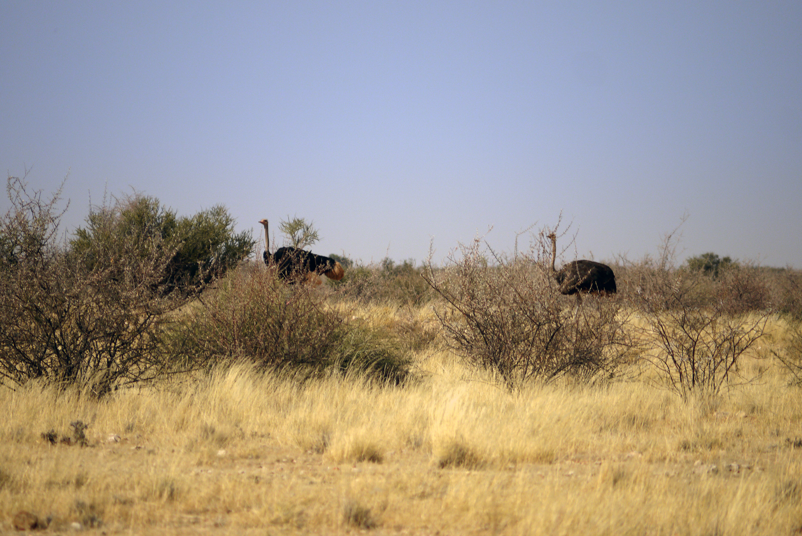 J’imaginais le désert du Kalahari comme une étendue de dunes rouges parsemées d’herbes jaunes. En réalité c’est l’inverse : du bush assez plat sous lequel on devine du sable rouge.