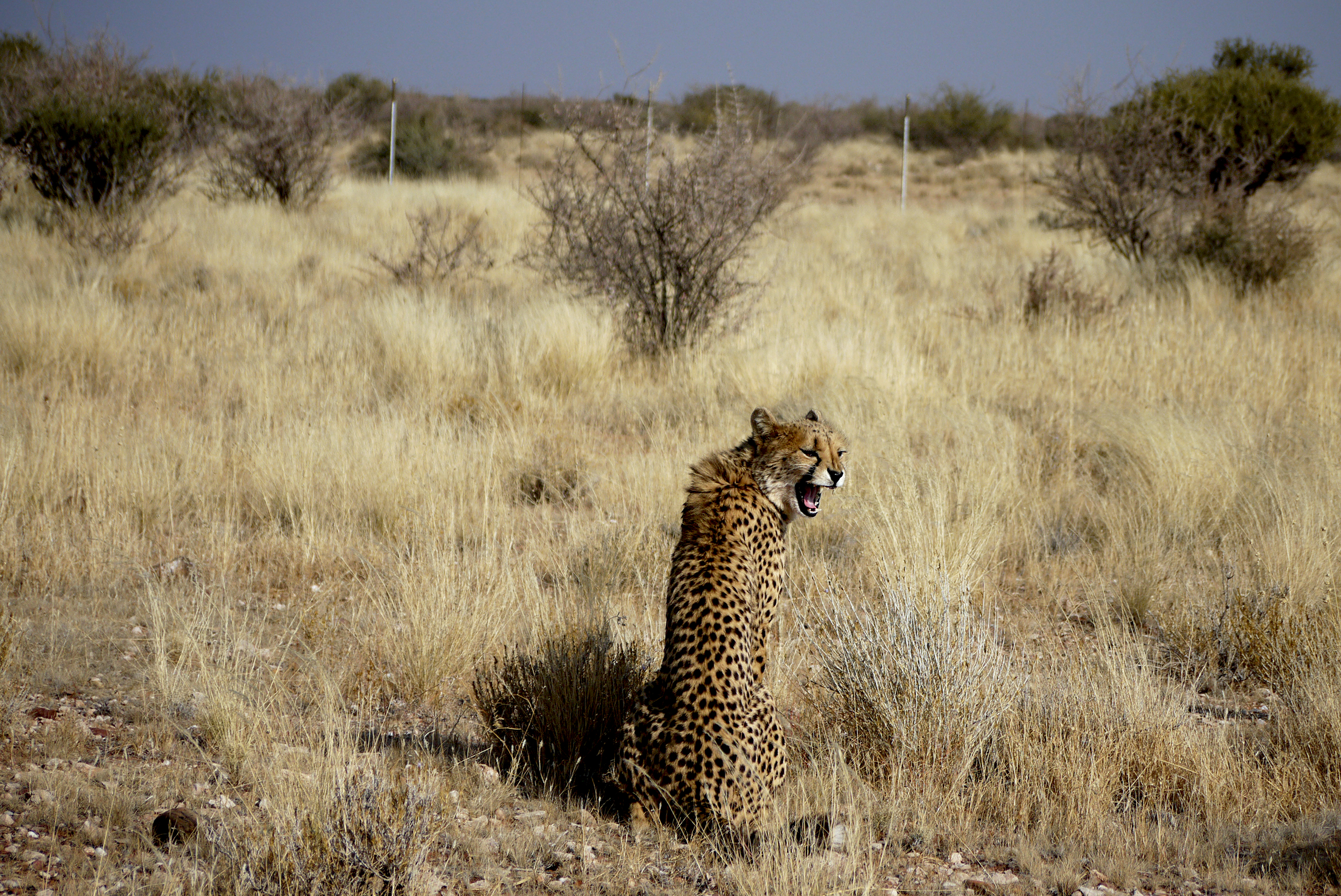Personnellement, je suis sceptique sur le bien fondé de la démarche de ces lodges. Je crains qu’ils ne fassent passer l’intérêt économique avant la protection des espèces. Toutefois, les guépards du Lapa Lange ont l’air en bonne santé et le prix dérisoire que nous avons payé doit tout juste suffire à régler les frais de vétérinaire et la nourriture. Pas de quoi s’enrichir. Le guide nous a dit que le vétérinaire était passé récemment, on peut donc supposer qu’ils sont bien soignés. Ayant perdu leur instinct sauvage, ils ne peuvent de toute façon pas être relâchés car ils mourraient. Alors finalement, ils ne sont peut-être pas si malheureux ici, dans leurs grands enclos.