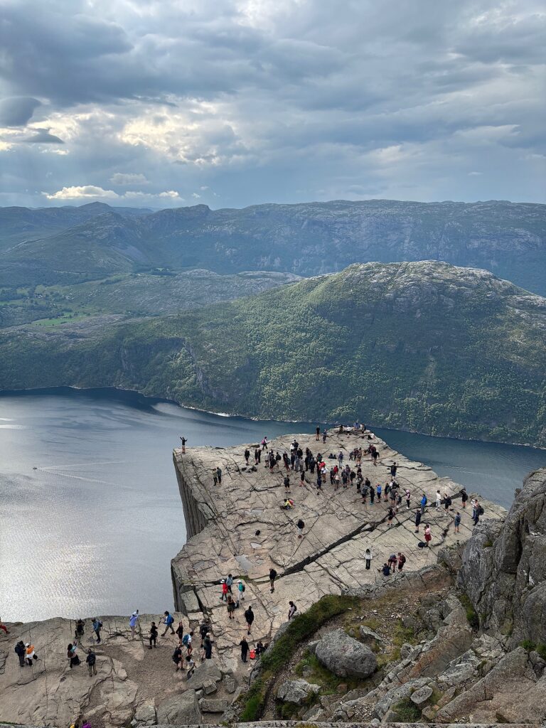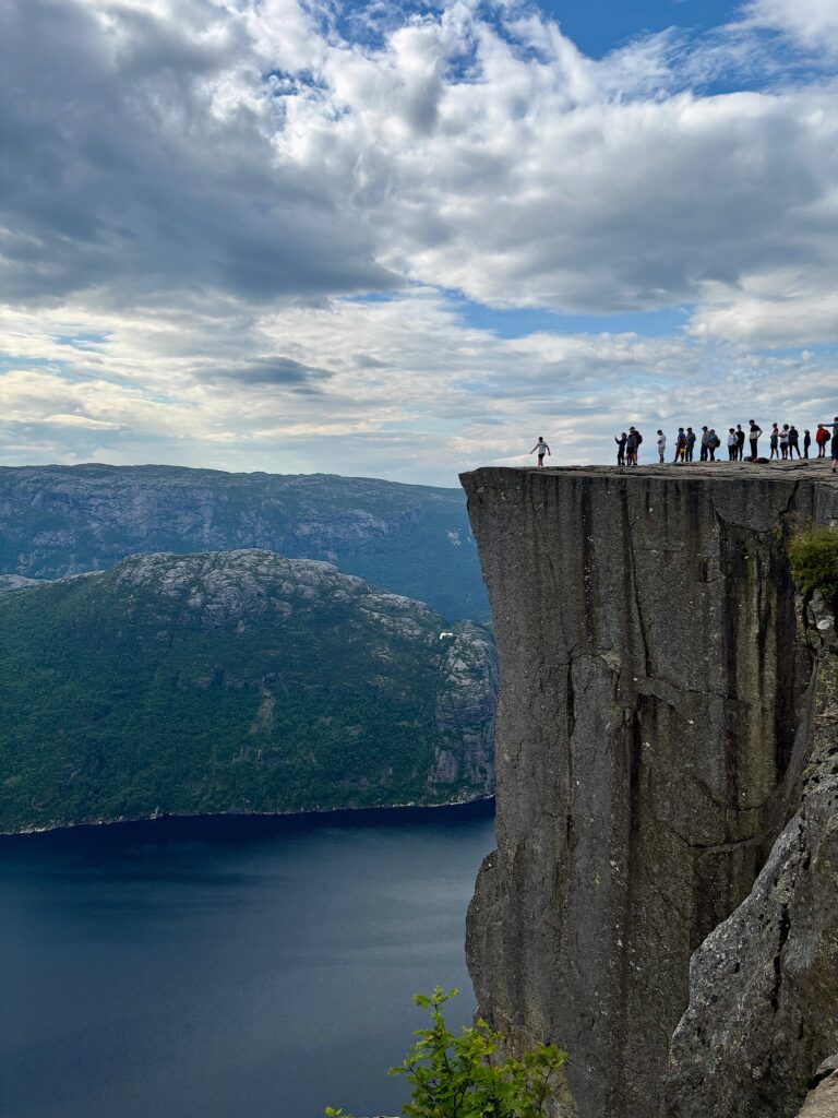 Une falaise de granit de forme cubique qui tombe à pic dans le Lysefjord 600 mètres plus bas, ça vous dit quelque chose ? Je suis sûre que vous avez déjà vu ce lieu emblématique de Norvège hautement touristique. C’est l’une des randonnées les plus célèbres du pays, ce dont on se rend vite compte en voyant le nombre important de personnes qui se pressent sur le chemin pourtant escarpé et pas facile.