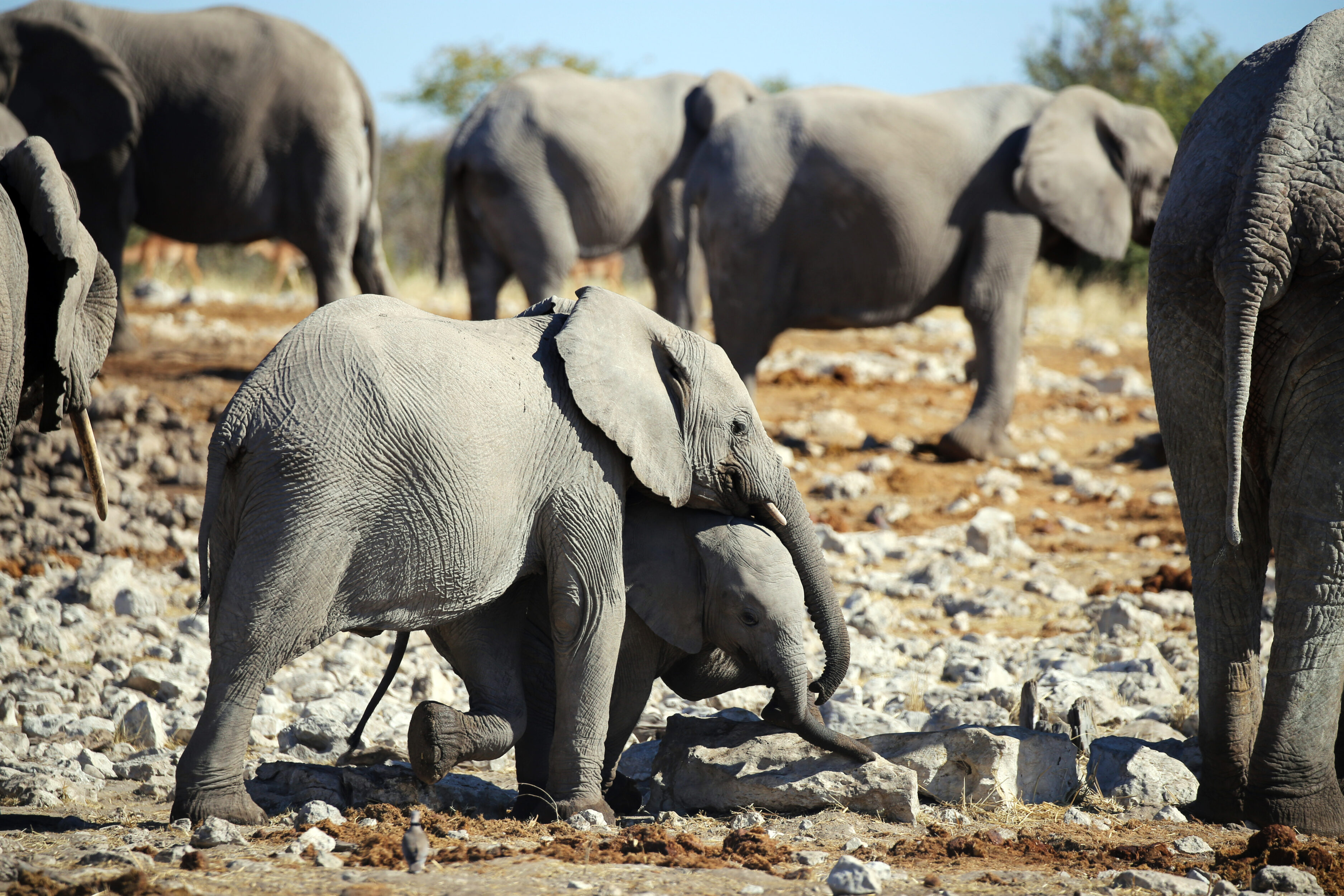 Eléphanteaux joueurs à Etosha (Namibie) Publié le 28 juillet 2017 à 3750 × 2500 dans Le Roi Lion à Etosha, suite et fin