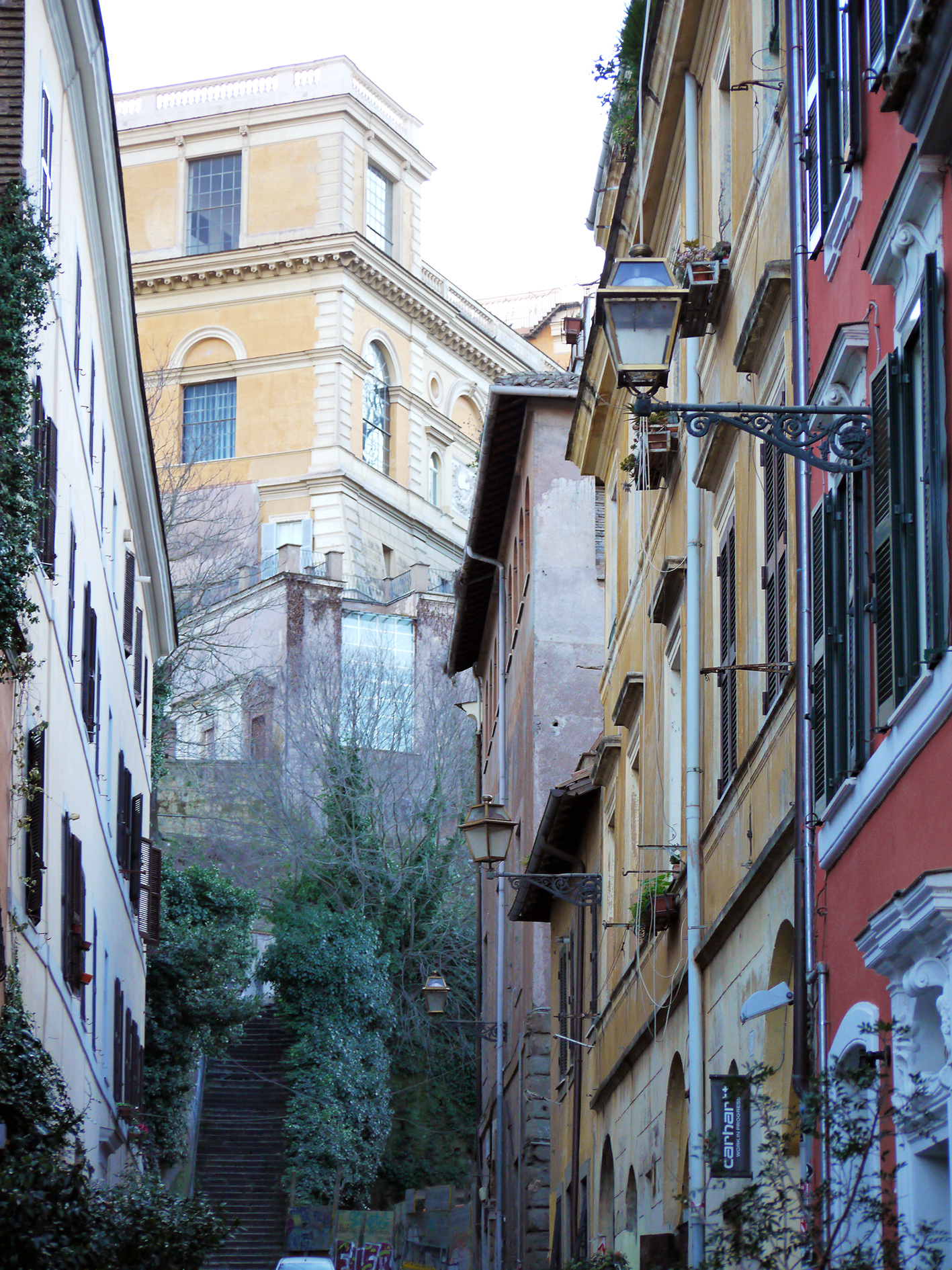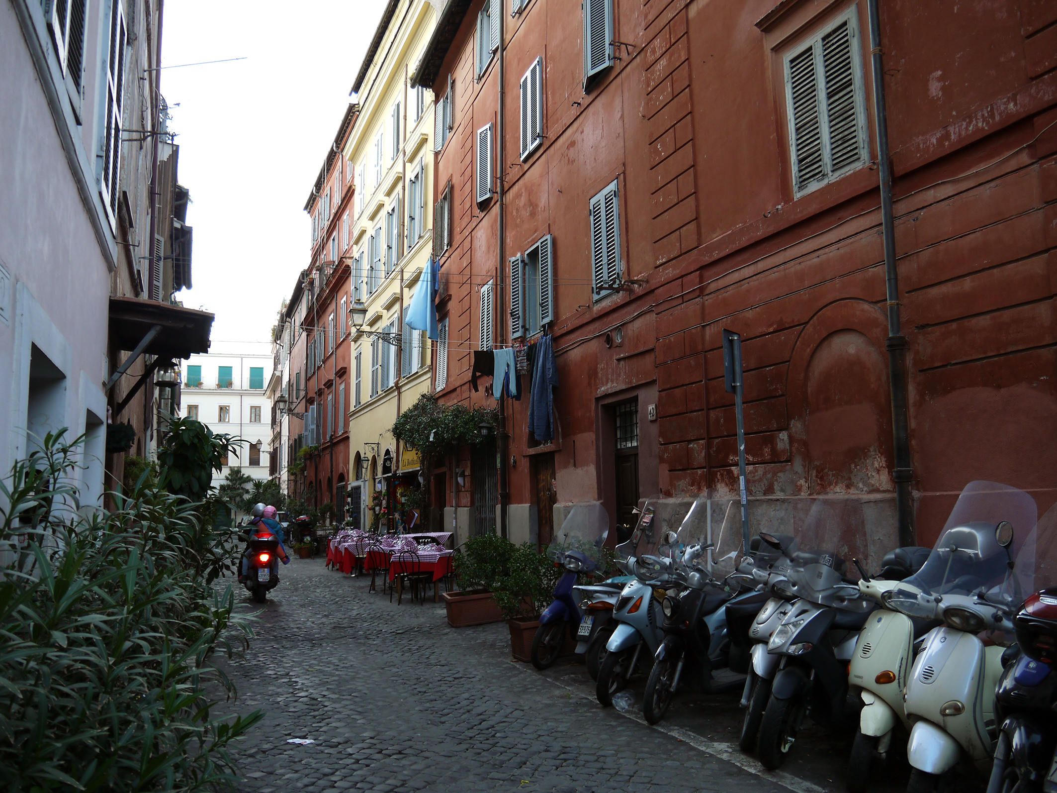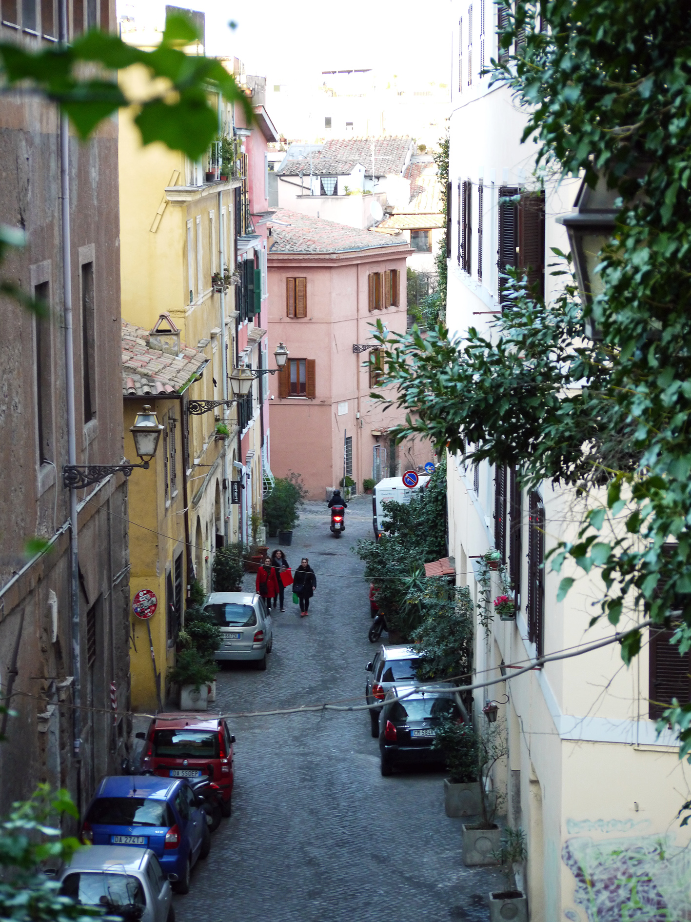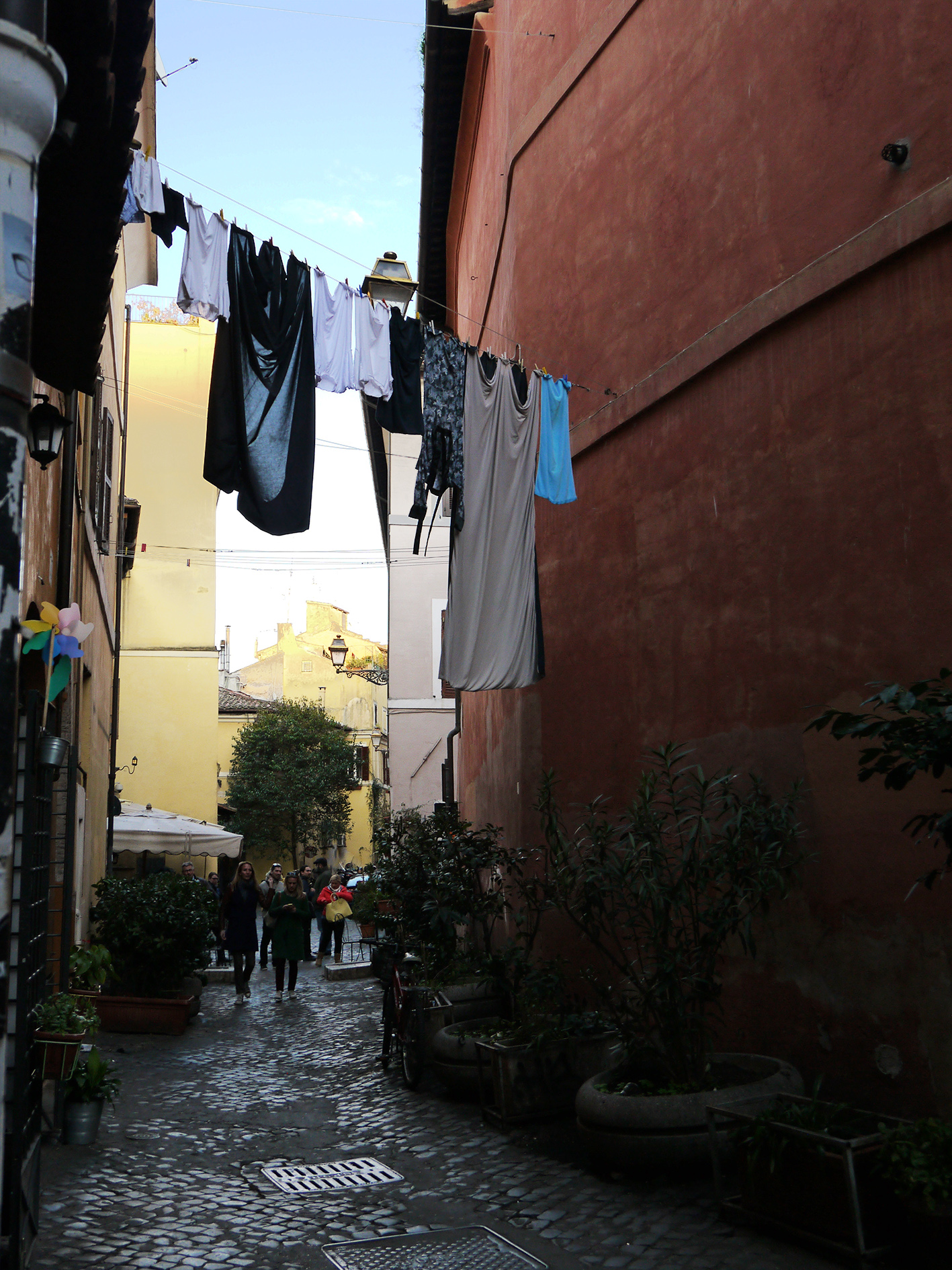 Le Trastevere est un quartier populaire, donc, mais qui est devenu assez touristique et un lieu de balade dominicale pour les romains. Il y a du monde mais, dès qu’on s’éloigne un peu dans les ruelles, on se retrouve seul et alors on peut apprécier l’âme du quartier.