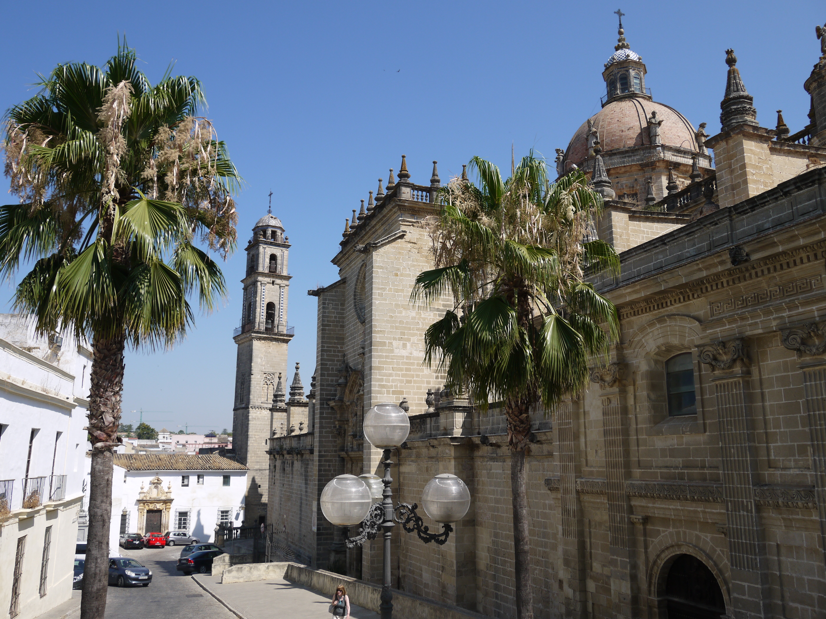 Jerez de la Frontera, ville célèbre pour son vin, le « sherry » tant aimé des anglais qui ont fait sa renommée. Nous on n’a pas trop aimé le Jerez, ni le sec ni le doux ! Seul le brandy et le vinaigre nous ont convaincus ! Mais avant la bodega, voici un aperçu de la ville et son Alcazar, bien plus petit que celui de Séville mais joli.
