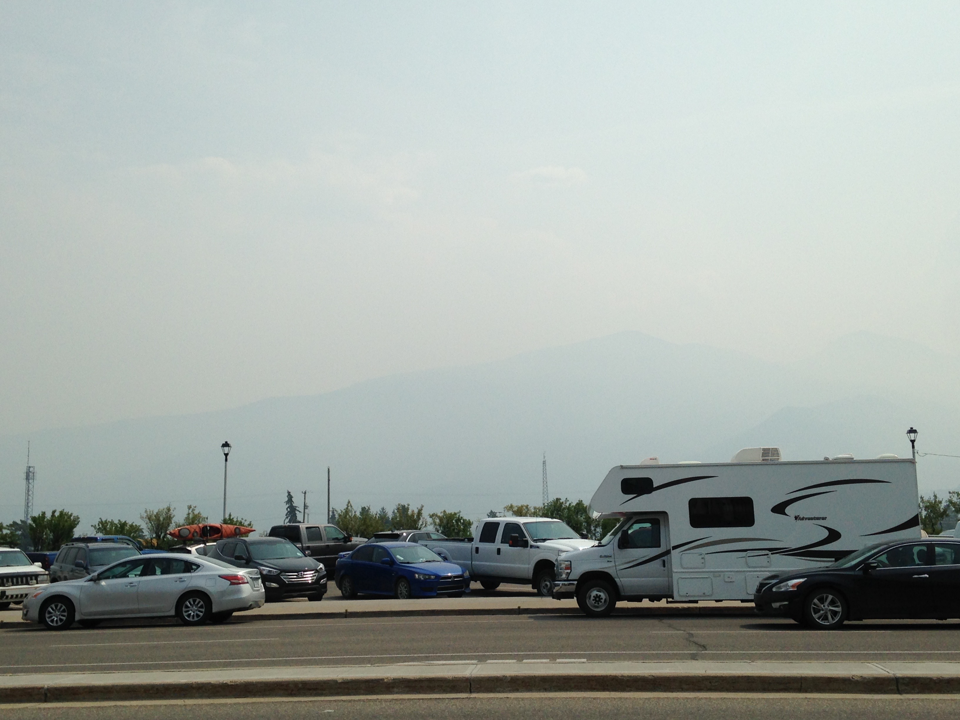 Après cela, de retour à Jasper, on s’offre une bonne pizza au feu de bois en terrasse. La fumée s’est dissipée un peu dans la matinée et l’air est redevenu respirable. Le soleil, jusque là masqué par la fumée, refait son apparition.