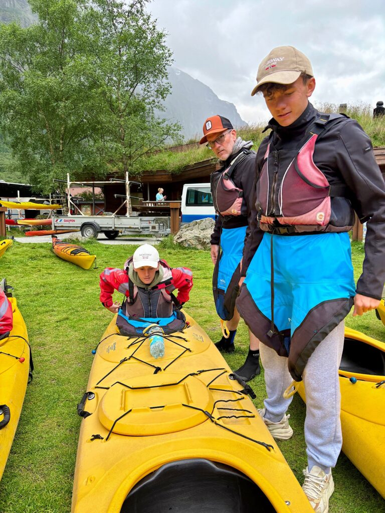 L’attente est un peu longue, le briefing aussi. On part à 14h30, équipés pour affronter les 14° de l’eau du fjord.