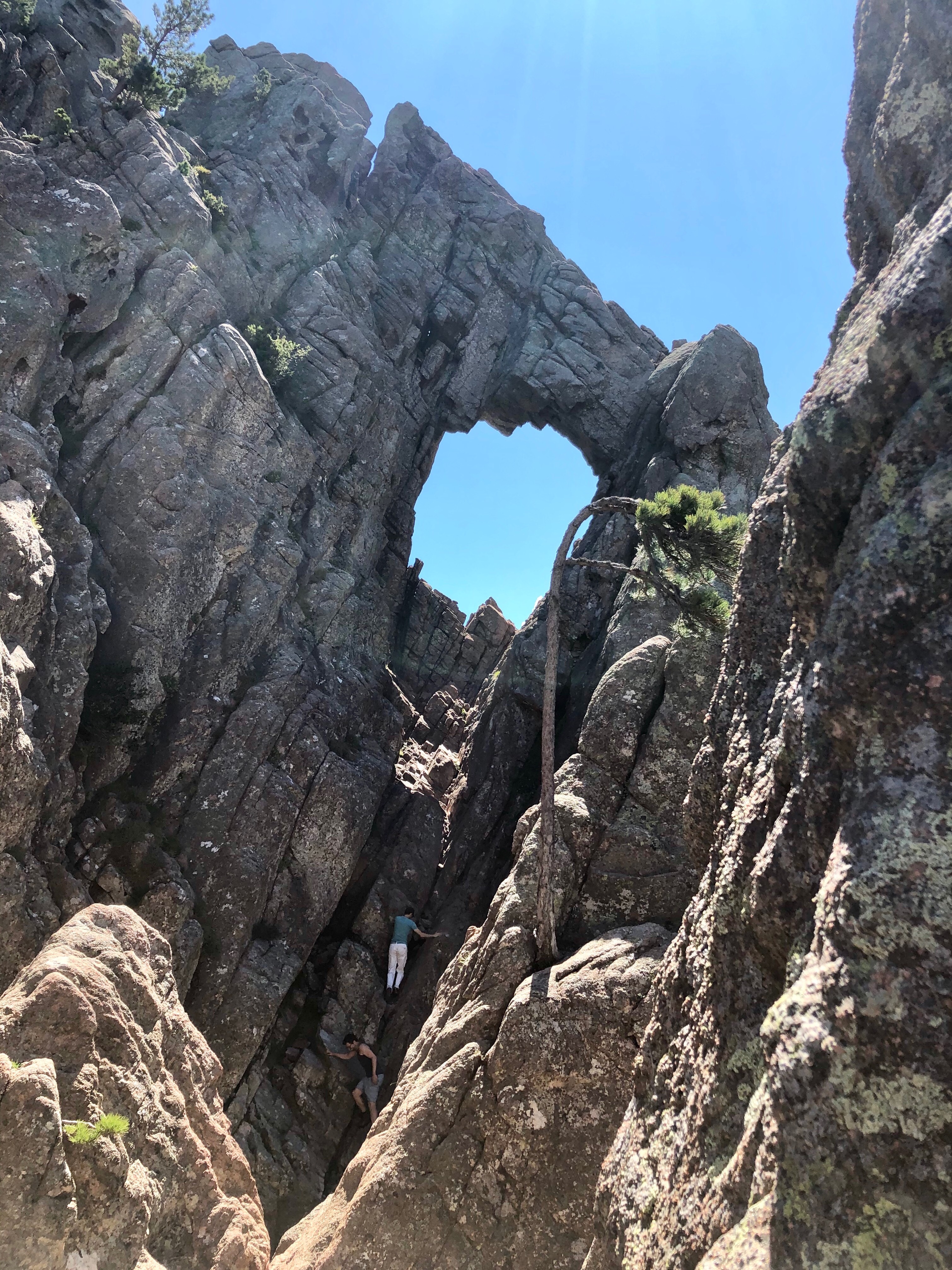 Randonnée incontournable du massif de Bavella. En été, il est nécessaire d’arriver assez tôt au parking pour trouver de la place et ne pas marcher à la queue leu-leu. On réalise une boucle de 6,6 km jusqu’au trou de la bombe, un cratère vertical dans une paroi rocheuse. Nous n’avons pas fait l’escalade jusqu’au trou ! Peu de vues tout au long, parfois des vaches qui partagent le chemin. Bien qu’une grande partie de la rando ne présente aucune difficulté, il faut être bien chaussé pour passer la partie rocheuse à la fin.