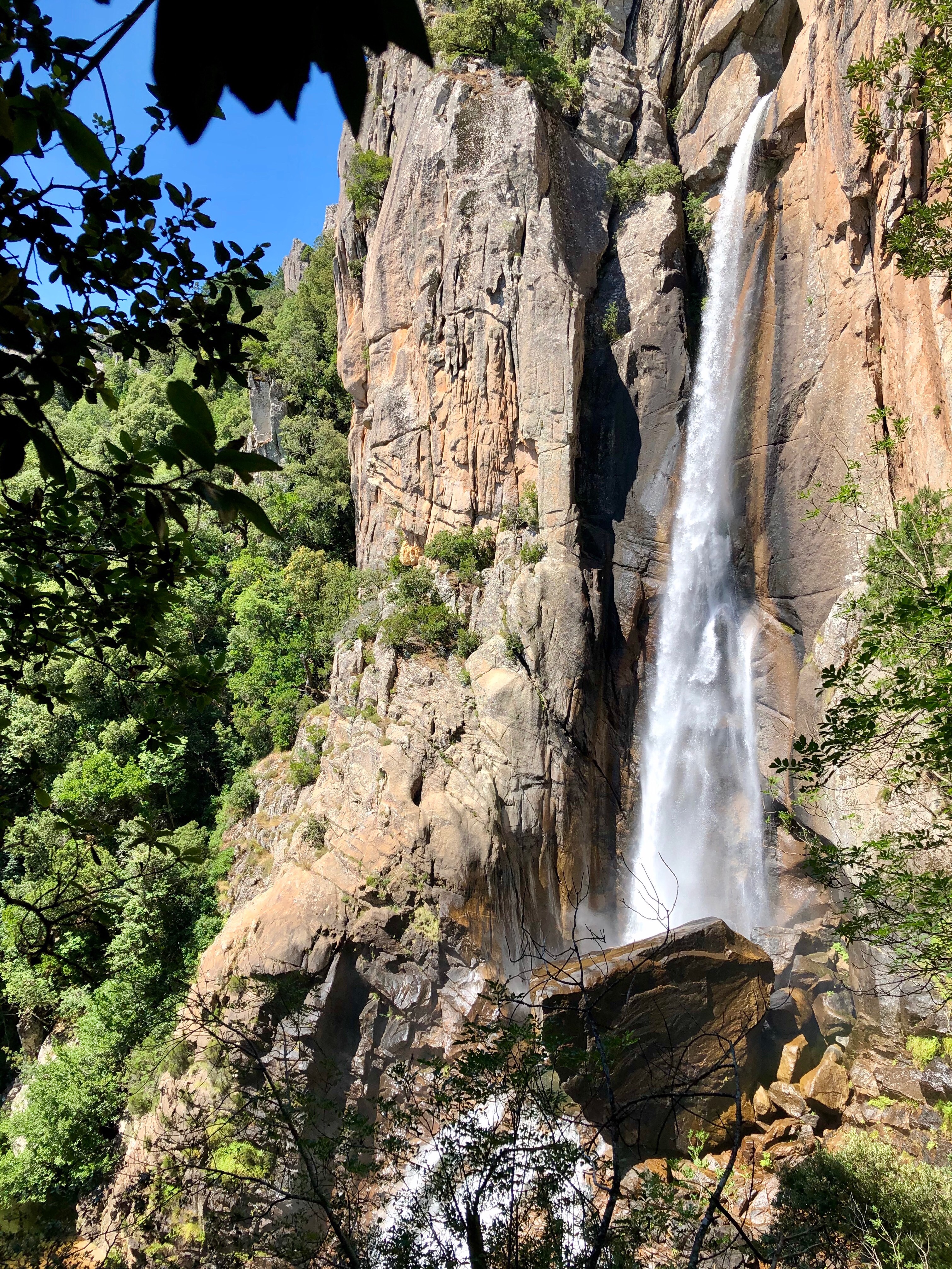 Réputée assez facile, cette petite randonnée de 5,4 km ne l’est pas tant que ça ! Elle est en effet facile et en partie ombragée jusqu’au rocher sentinelle (tafoni percé d’un trou) mais ensuite ça se complique un peu. Et si on veut descendre au pied de la cascade, mieux vaut être bien chaussé et avoir de bonnes cuisses pour la remontée.