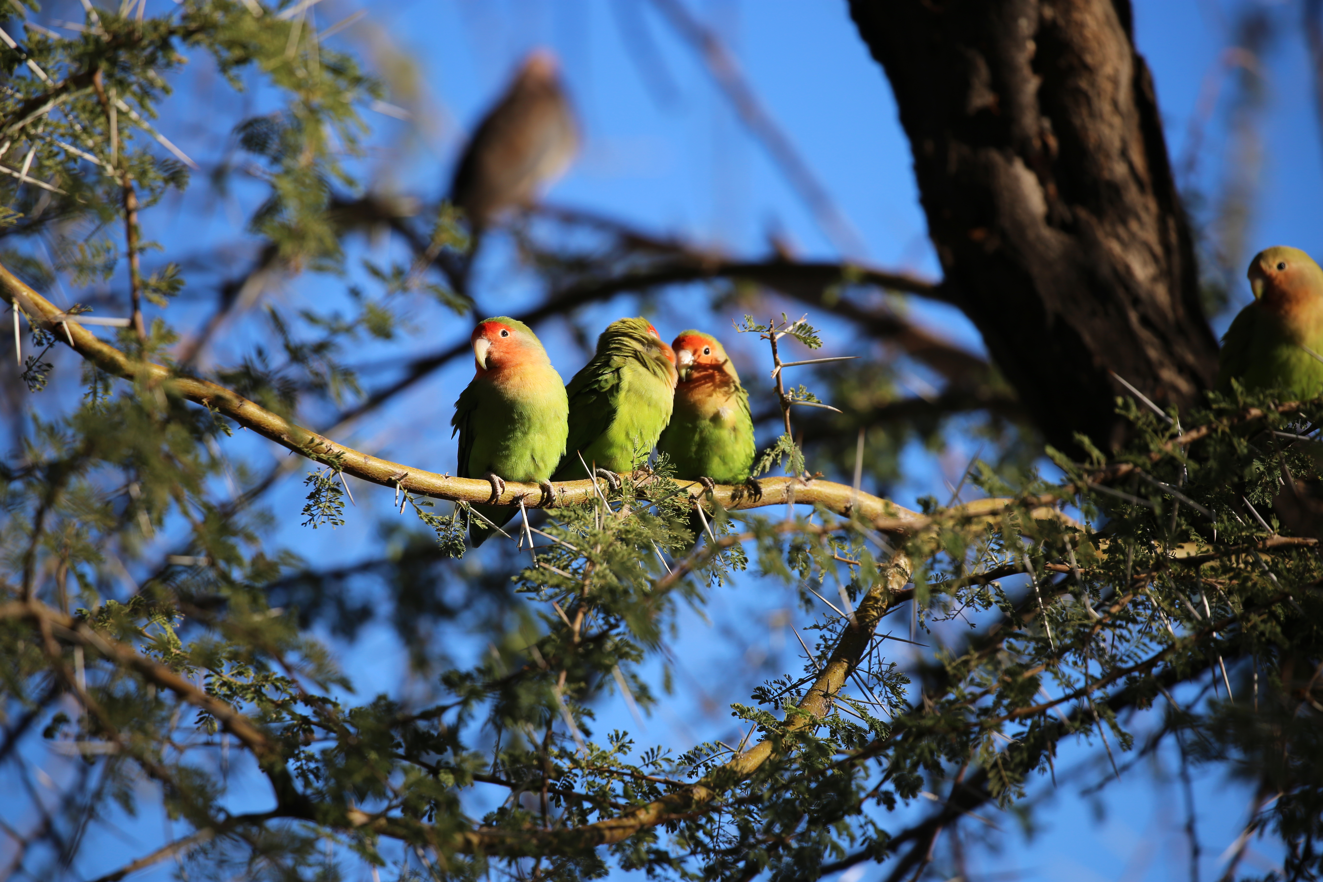 Mais il y a de jolis oiseaux. Des Rosy-faced lovebirds.