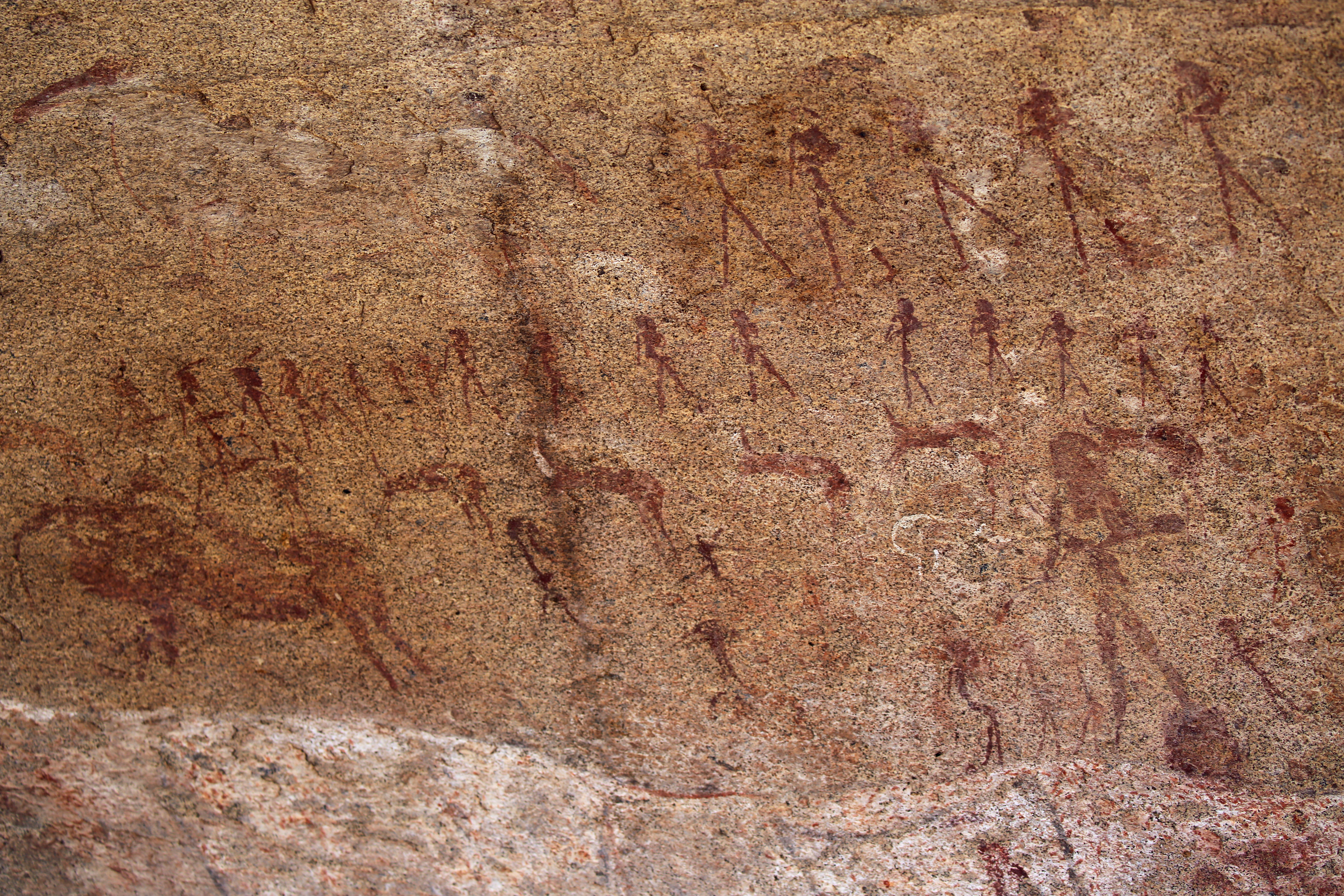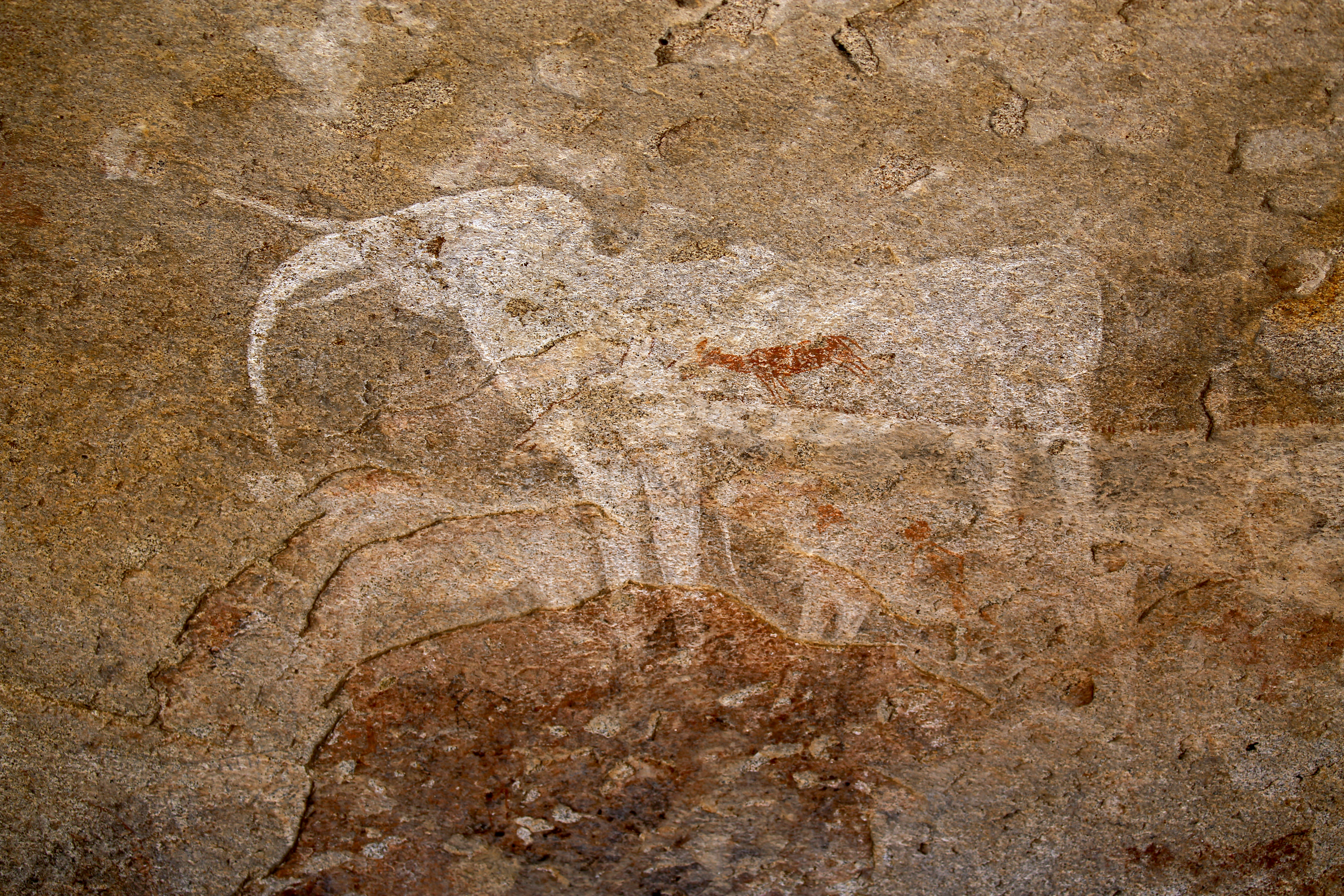 Ensuite nous allons explorer Philip’s Cave, une petite grotte nichée dans la falaise, qui abrite des peintures rupestres faites par les Bushmen, dont deux éléphants blancs. L’un est un peu effacé mais on voit encore bien le second ainsi qu’une girafe et une scène de chasse. Là aussi la vue sur la savane est sympa. Par contre, ça se mérite ! La grimpette est un peu raide à travers les rochers et il commence à faire chaud.