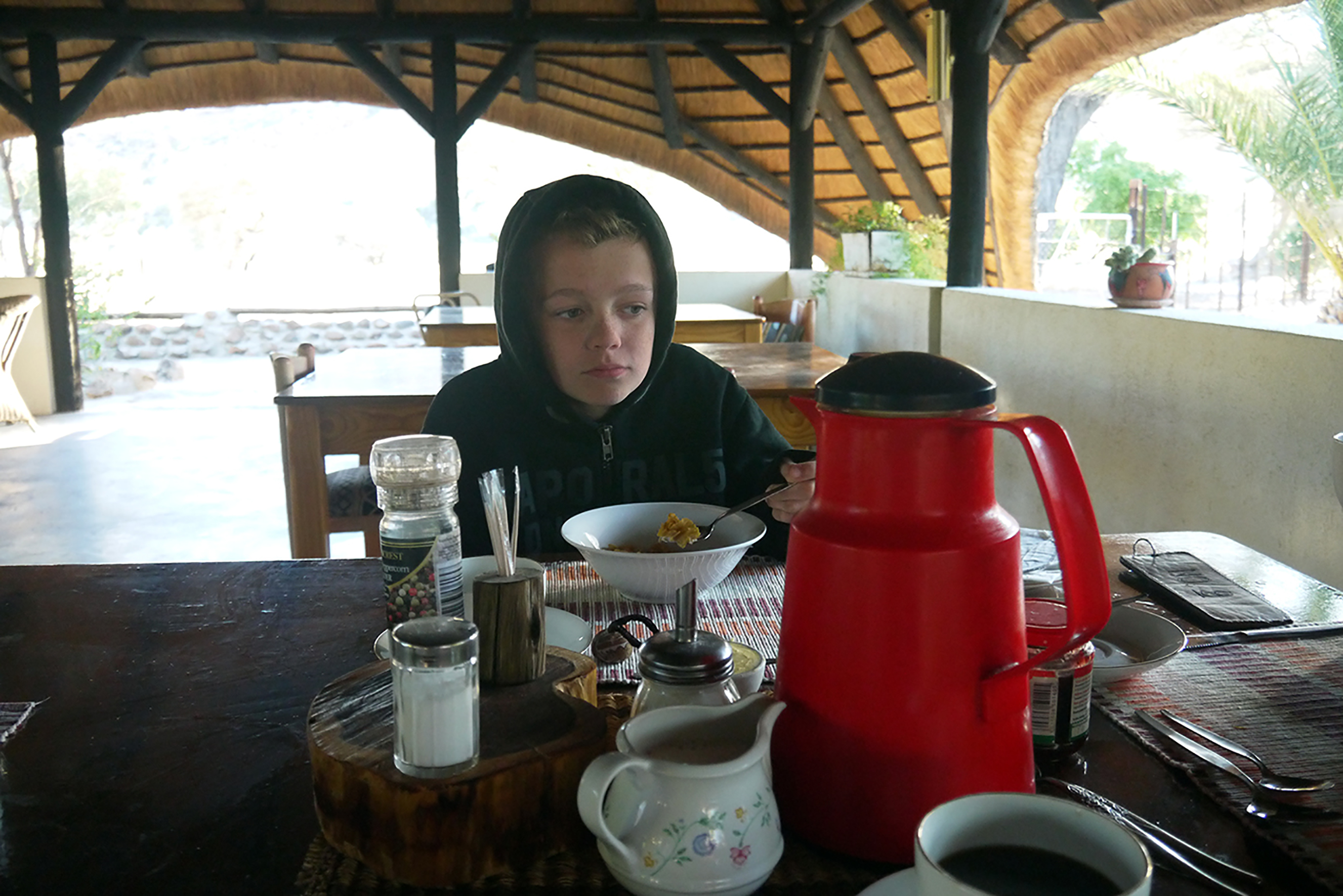 On apprécie de se poser un peu après près d’une semaine de circuit à un rythme soutenu. Un apéro face à la savane au soleil couchant, c’est une magnifique récompense qui ponctue un magnifique voyage dans une ambiance africaine très cool. Les namibiens sont souriants et très sympas, nous adorons ce pays.
