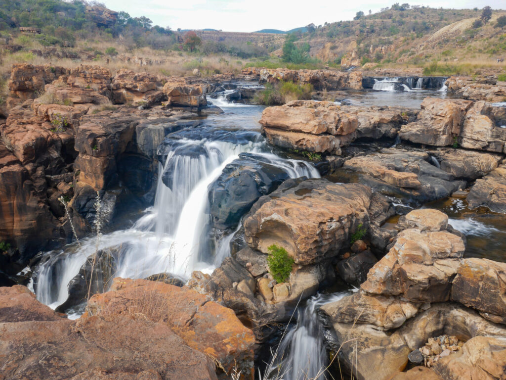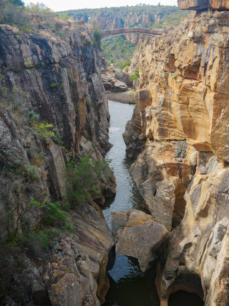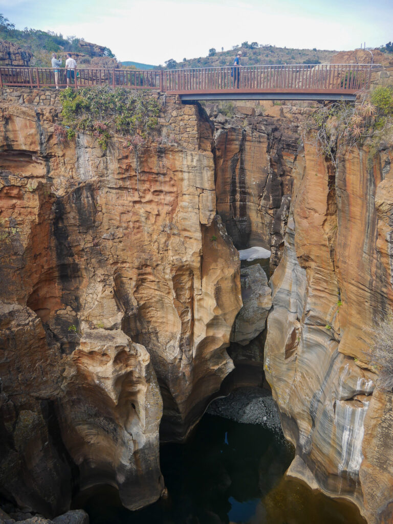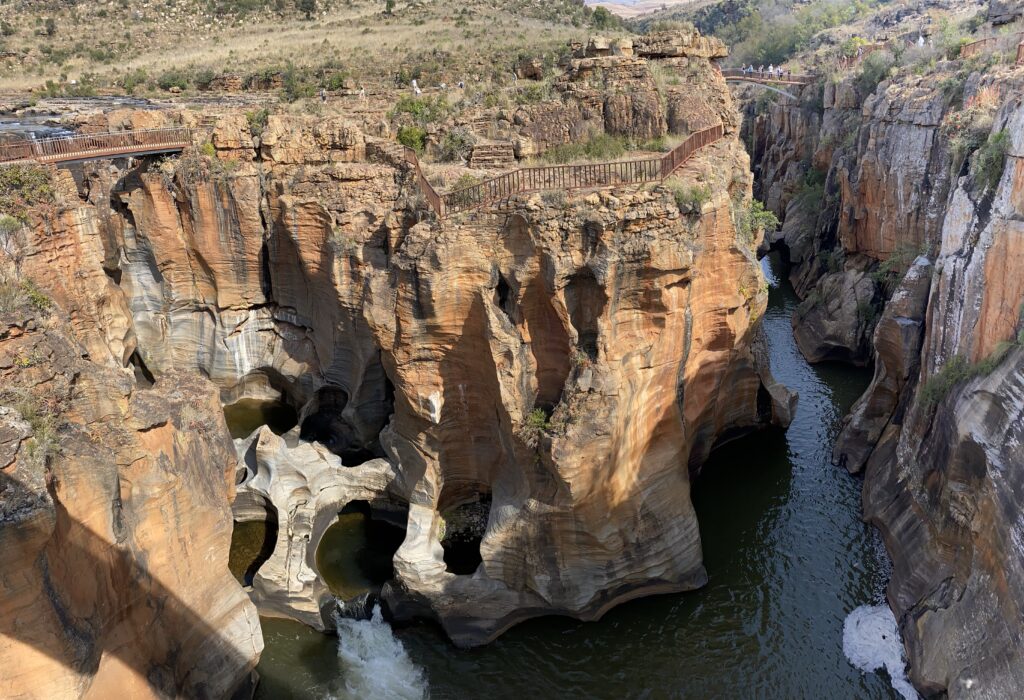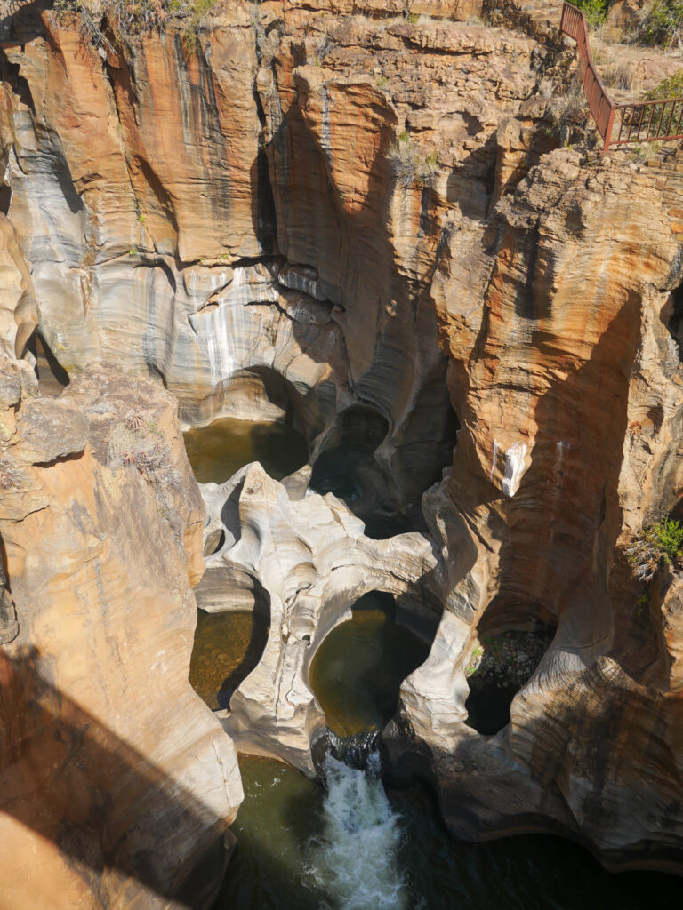 Prochain arrêt : Bourke Luck potholes. Pour une fois, on apprécie de voir des potholes ! Ceux-là sont creusés par le courant des rivières dans la roche tendre. On est au point de confluence des rivières Treur et Blyde. Une promenade aménagée permet de faire le tour du site. Ce n’est pas très long mais on peut facilement y passer 45 minutes tant les vues sont belles.