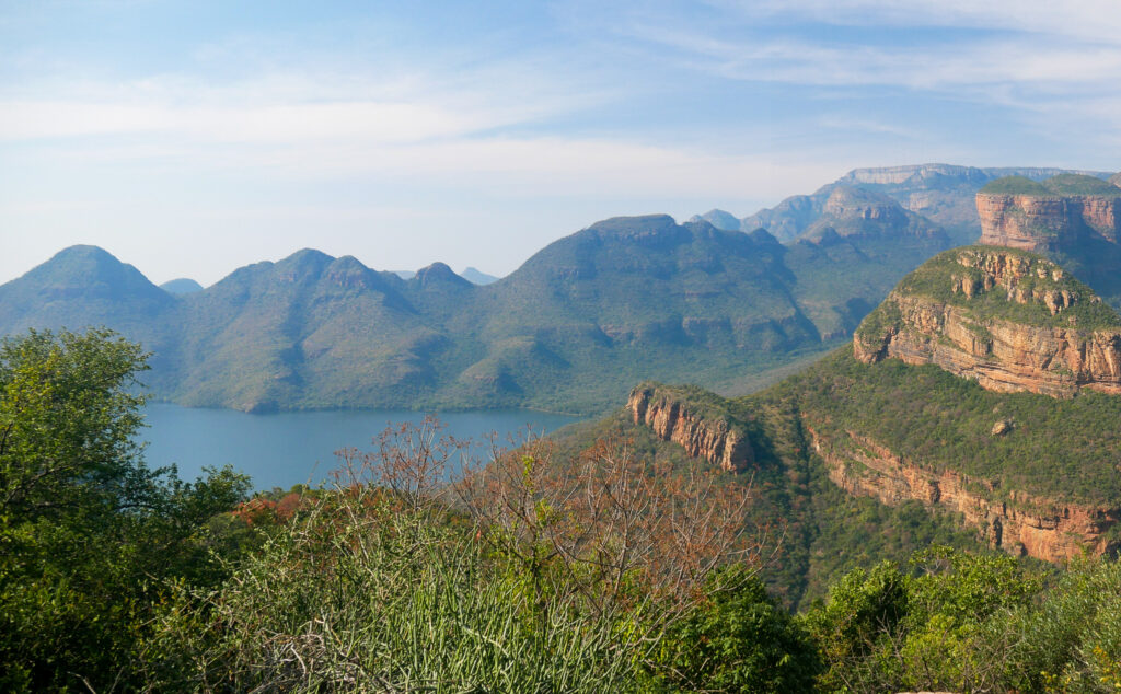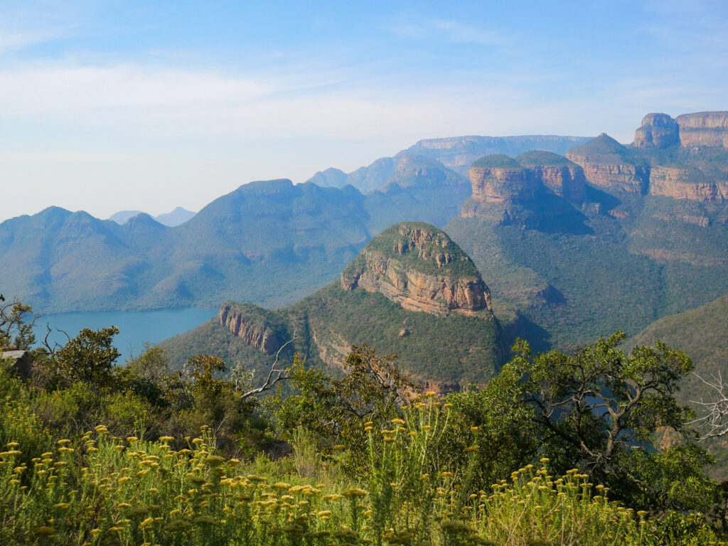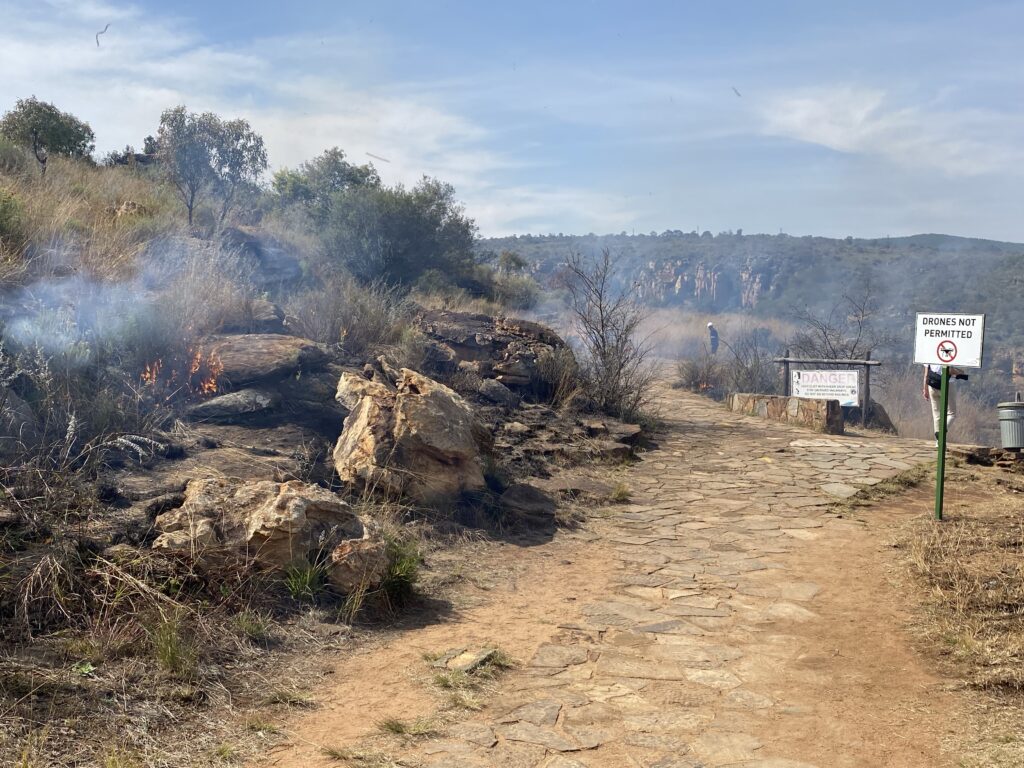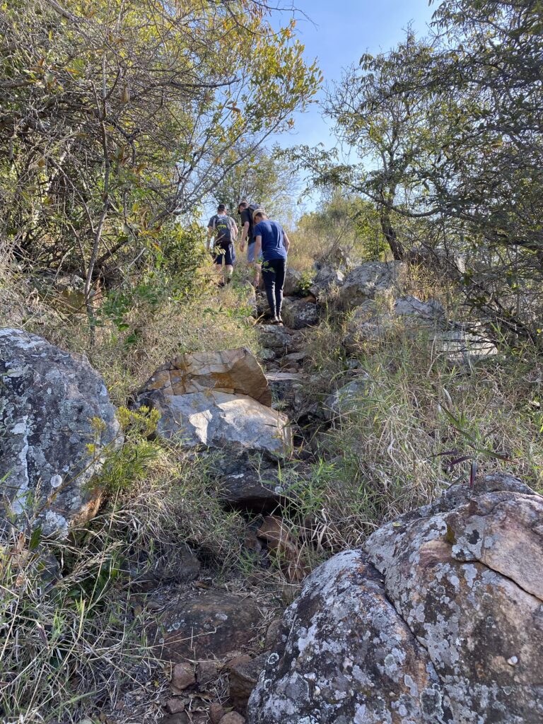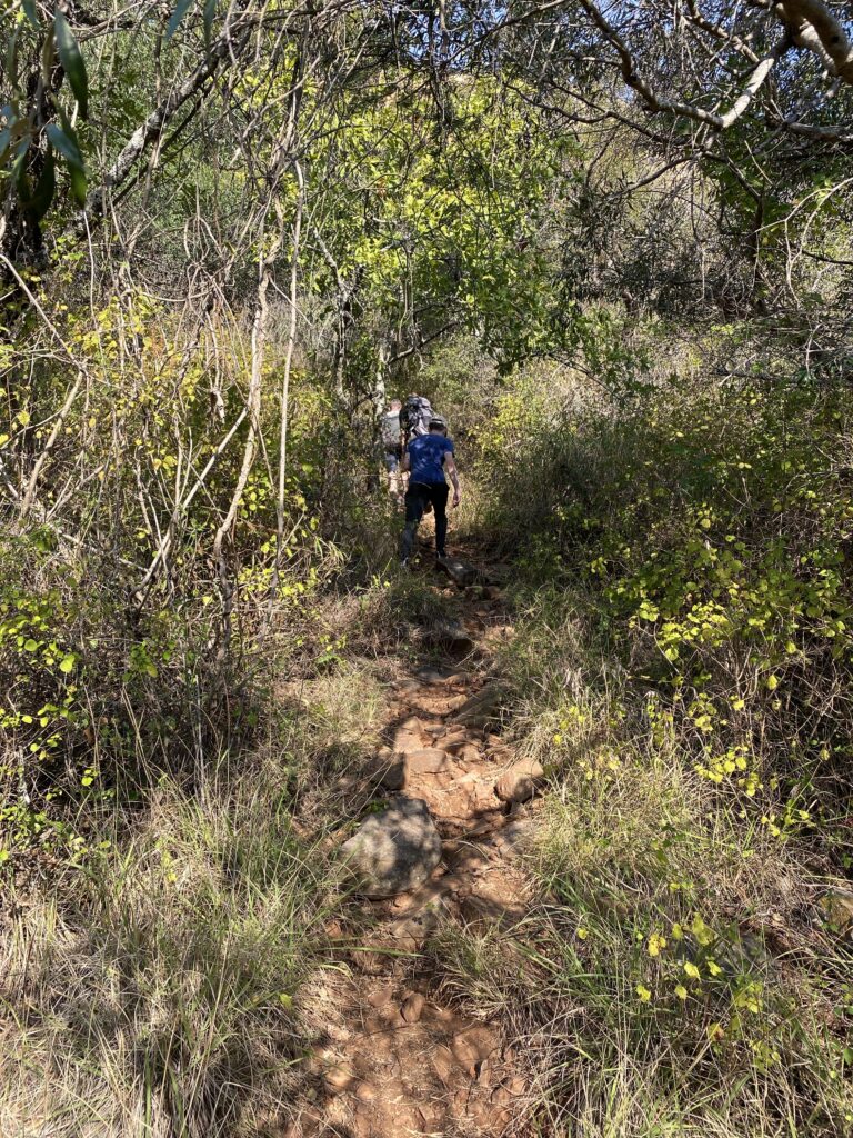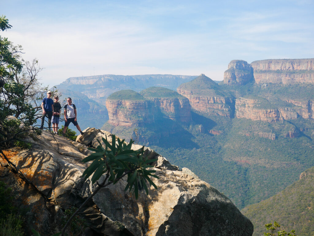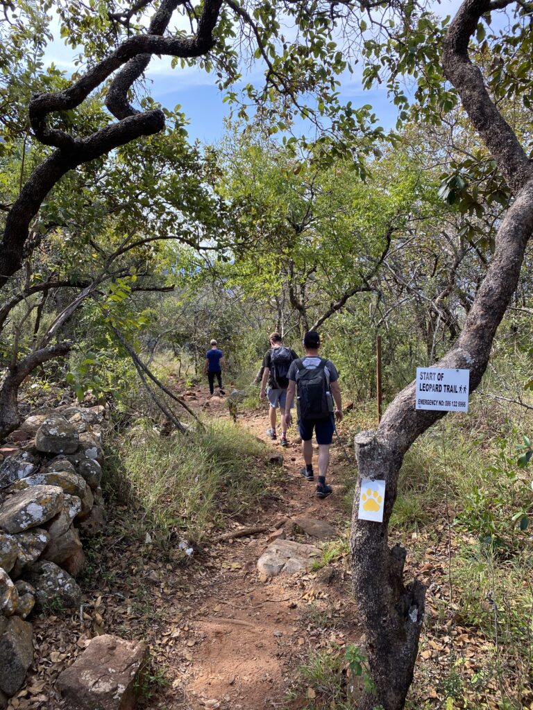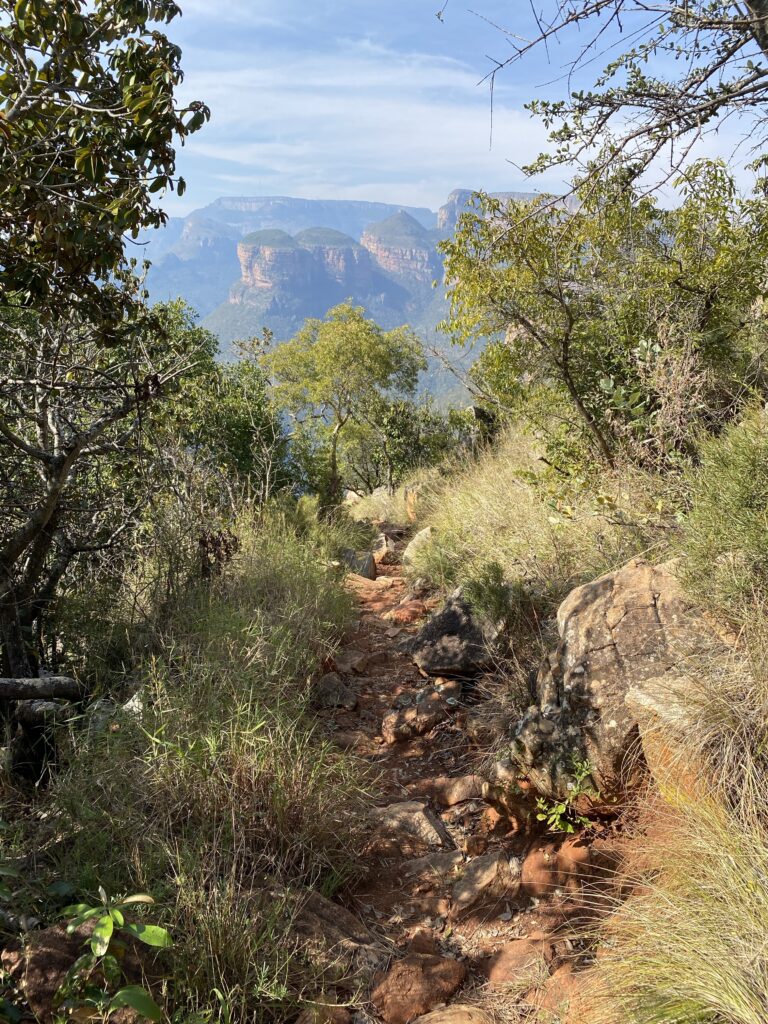 Leopard trail commence par un chemin rocailleux tout en descente avec, par endroits, de superbes panoramas sur les Three rondavels et le Blyde canyon.