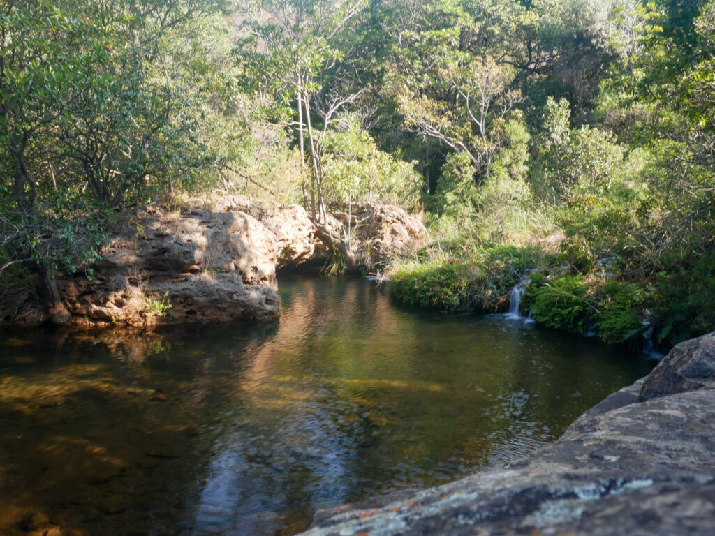 Après la bifurcation sur Guinea fowl trail, plus on descend plus on on entend un bruit d’eau. On atteint alors un bassin, puis un second avec une petite cascade. C’est joli, c’est bucolique et la fraîcheur de l’eau est la bienvenue.